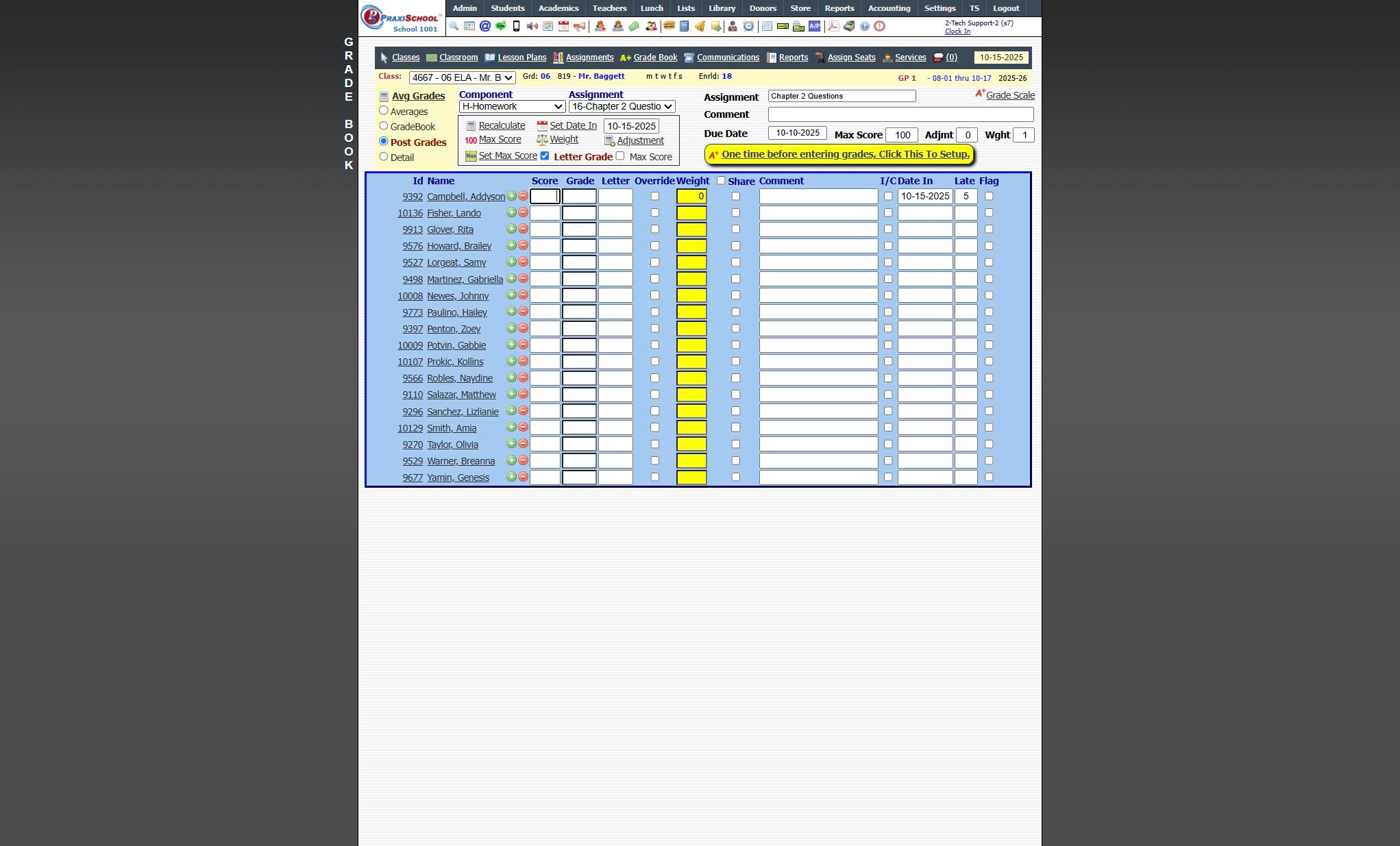 9. Click "One time before entering grades, Click This To Setup."