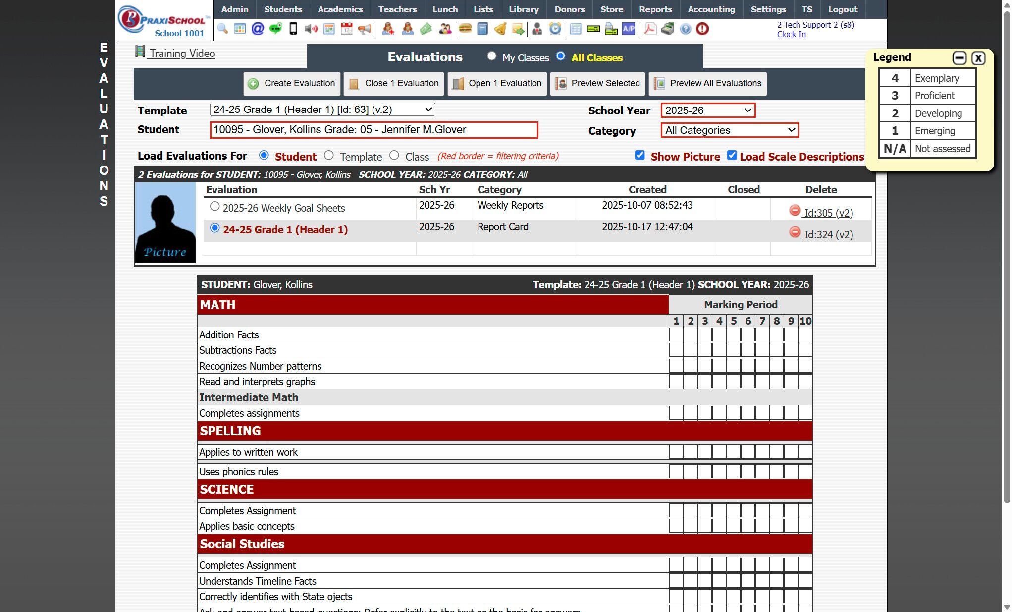4. Select Load Evaluations For Option (Student, Template or Class)