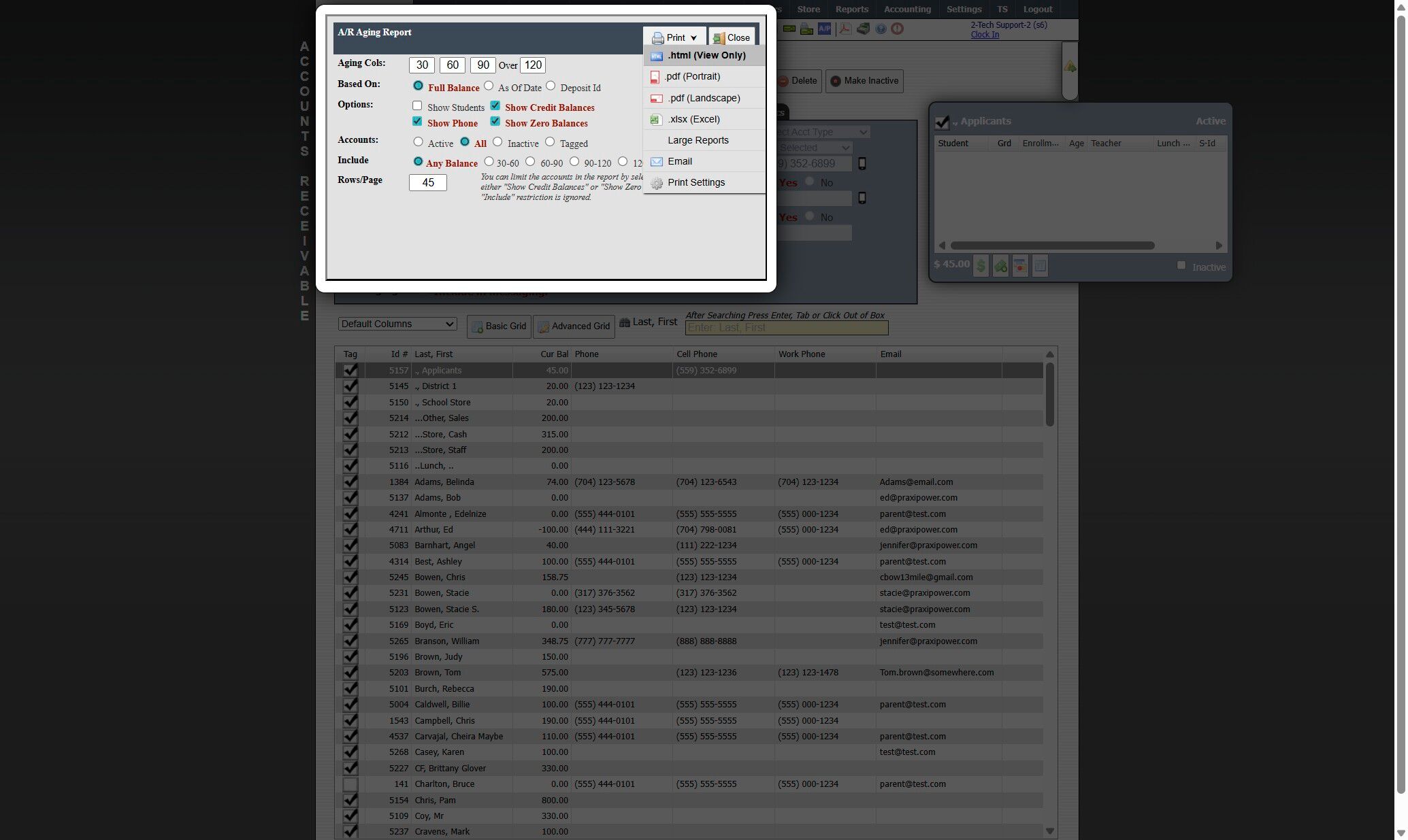 Generating an Accounts Receivable Projected Income Report 1. Log into PraxiSchool 2. Click "Admin" 3. Click "Accounts Receivable" 4. Click "Actions" 5. Click "Reports" 6. Click "Projected Income" 7. Set Dates "From" and "To" 8. Click "Print" 9. The ...