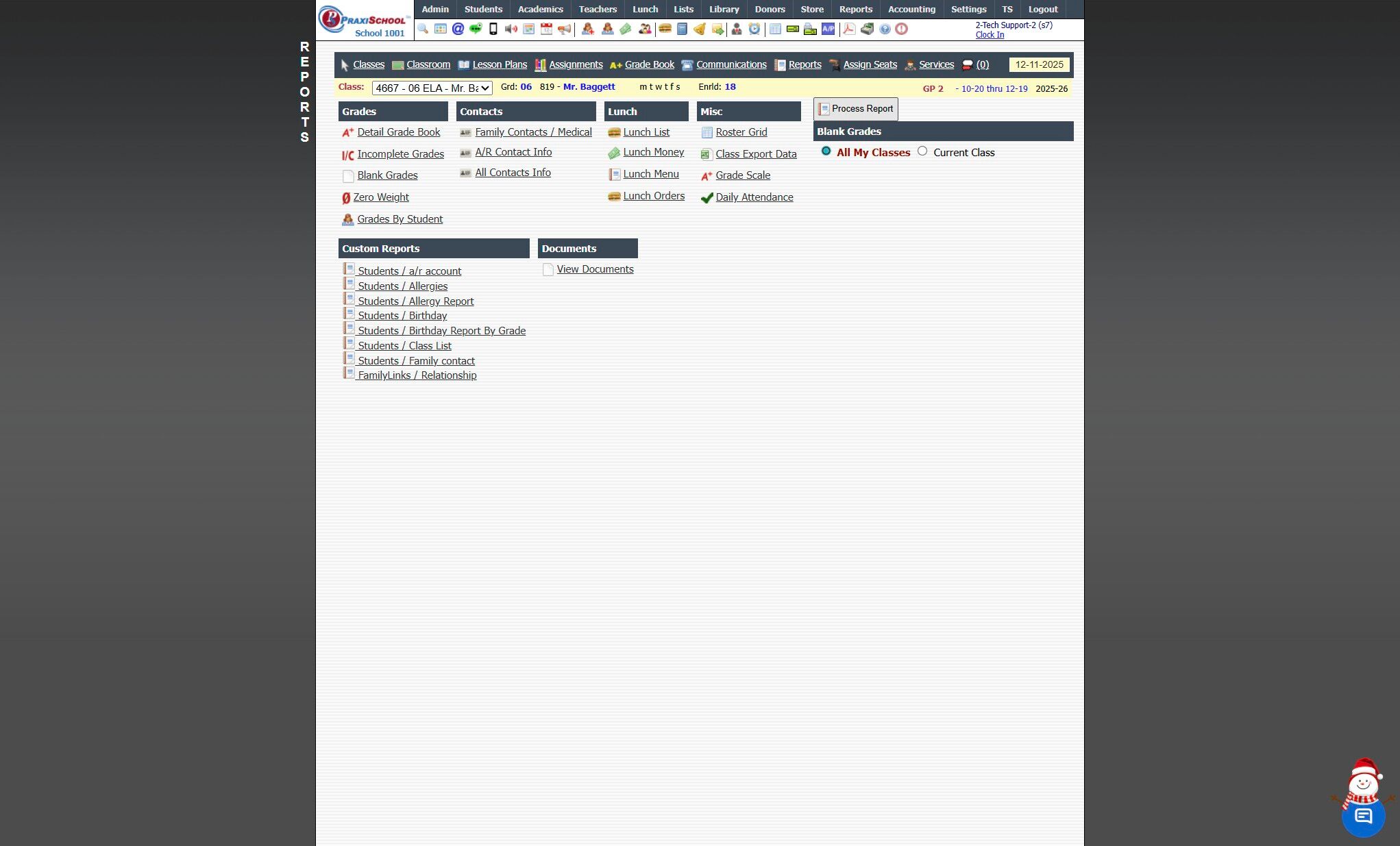 Generating Blank Grades Report