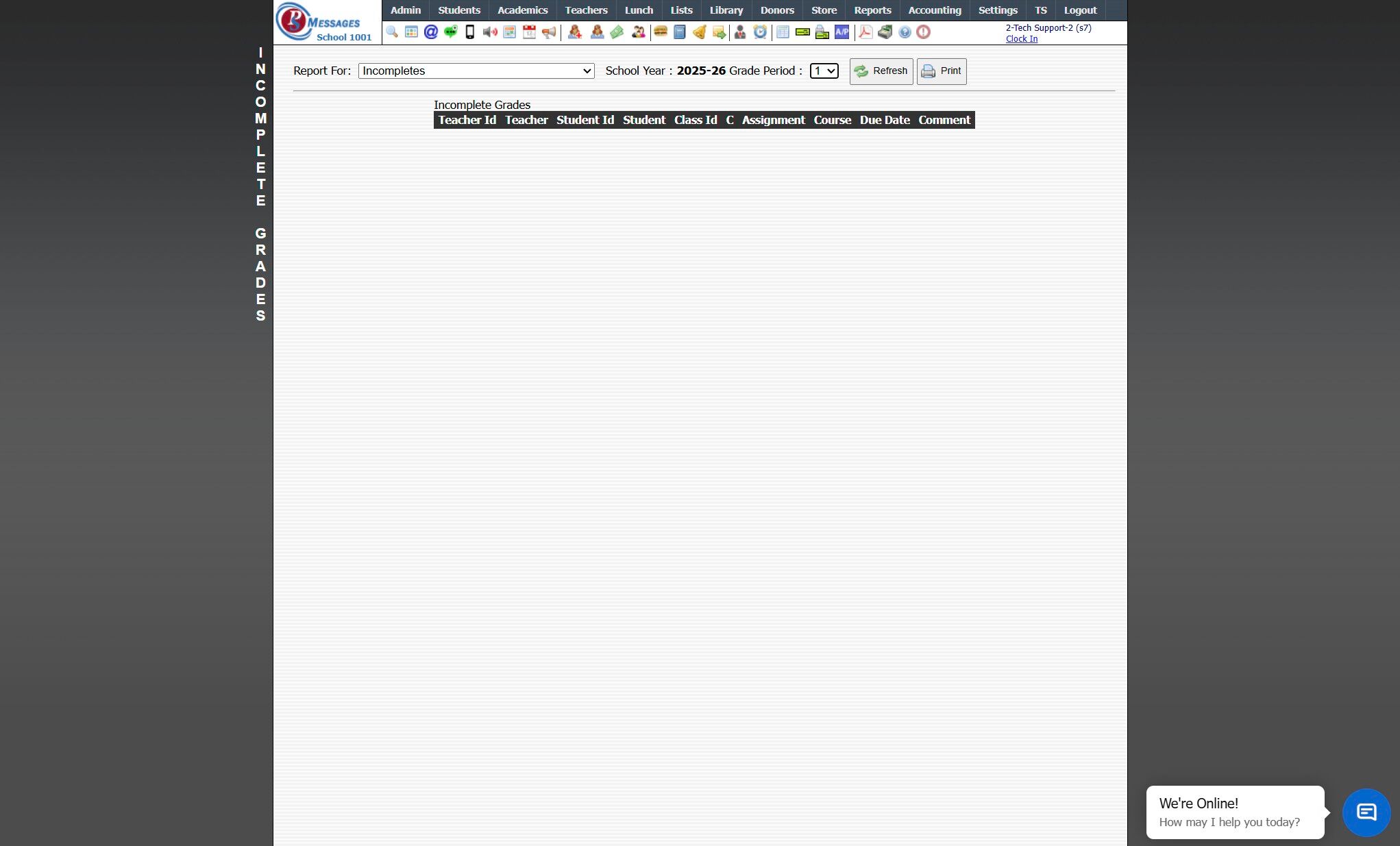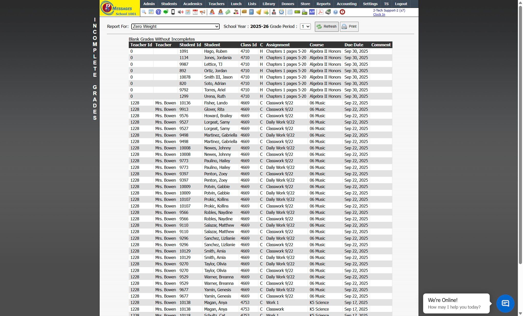 Grade Reports for Incomplete Grades, Blank Grades (Not Marked Incomplete) and Zero Weight.