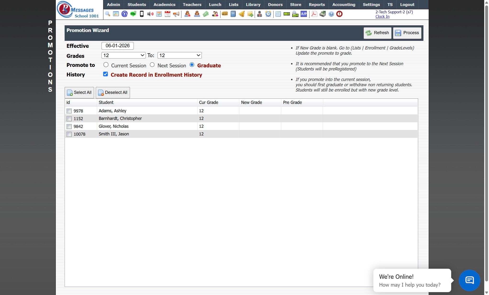 Archiving Students in Batch 1. Click "Students" 2. Click "Students" 3. Tag Student Records to Archive 4. Click "Actions" 5. Click "Other Actions" 6. Click "Archive Students" 7. Click "Select All" 8. Click "Archive Checked Students", Click "Ok" & ...
