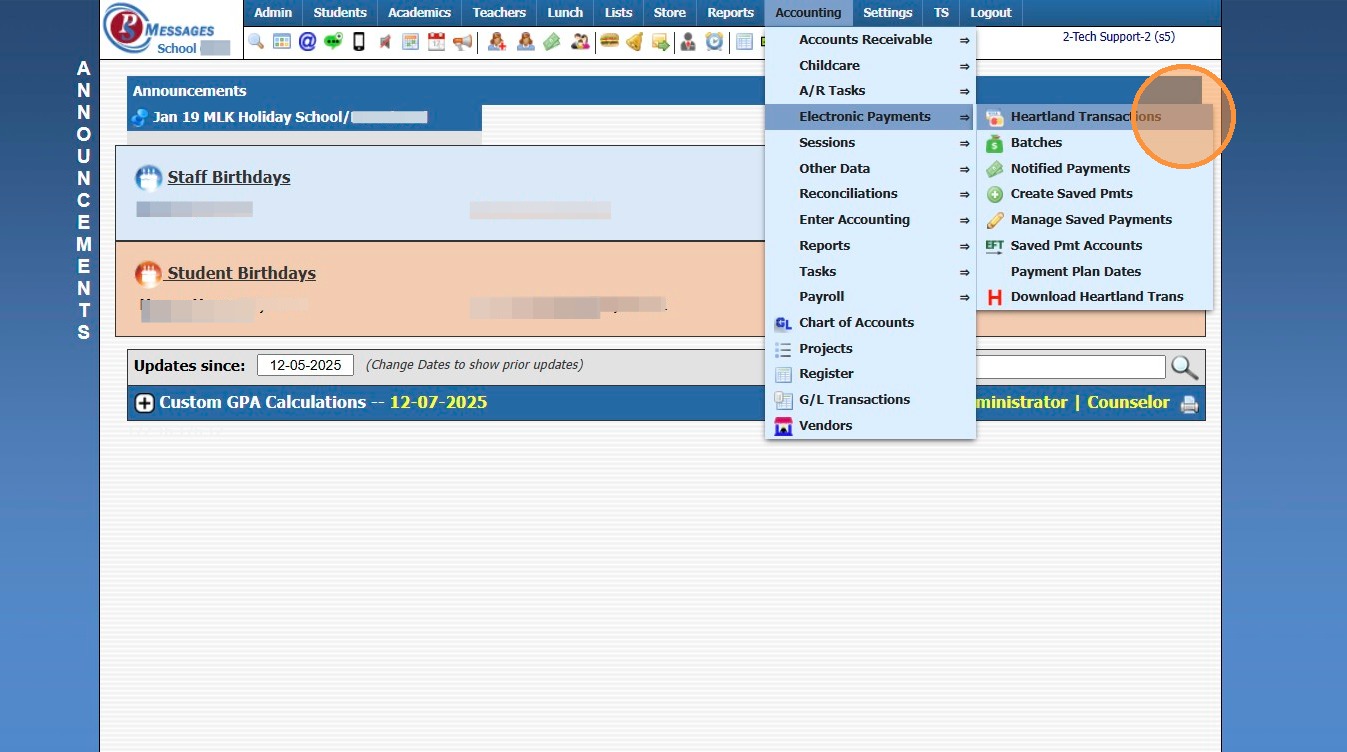 3. Click "Heartland Transactions"