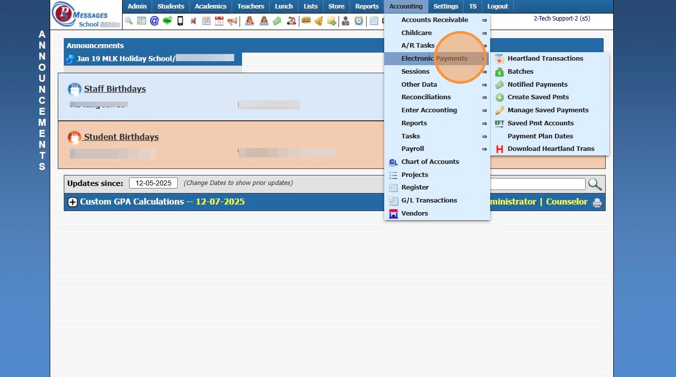 2. Click "Electronic Payments"