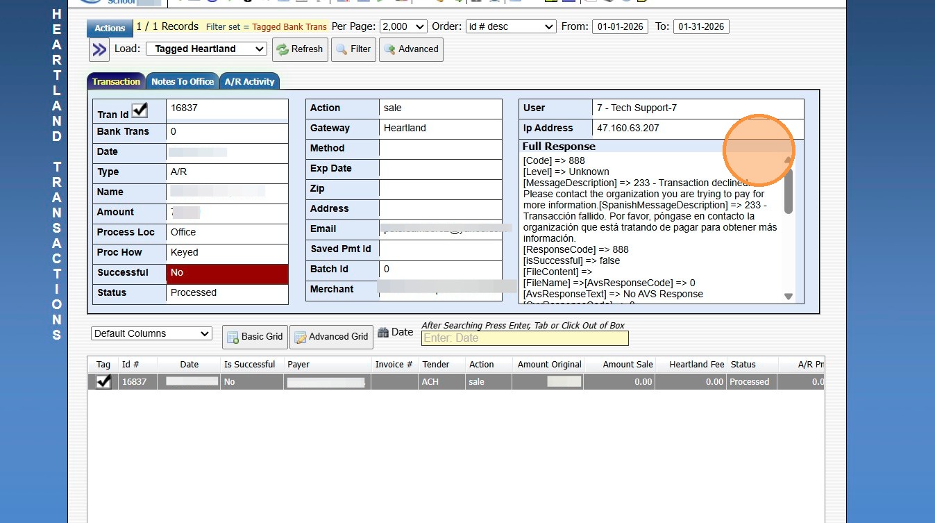 Heartland Declined ACH Message - Blacklist