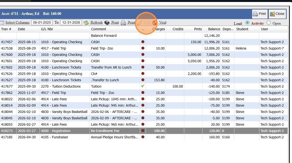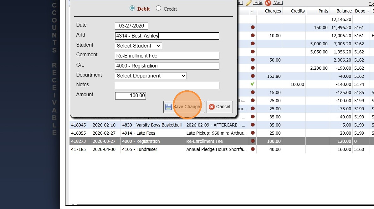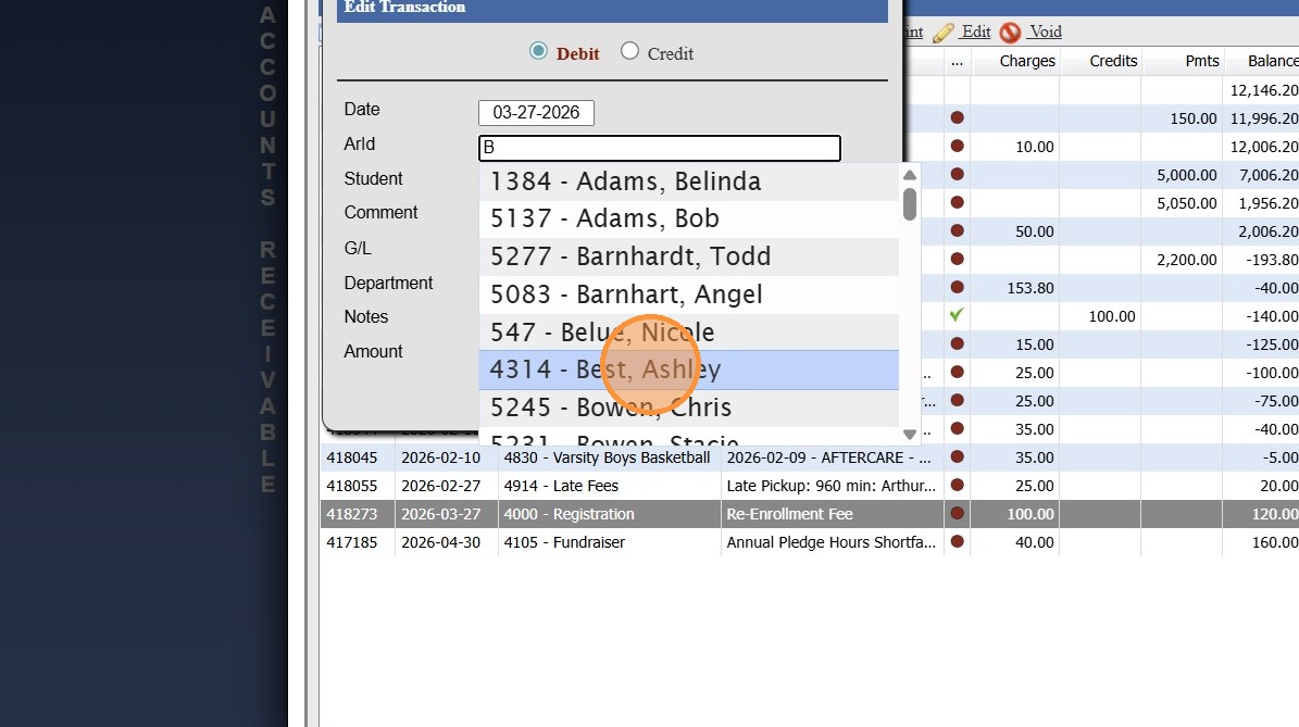 Adding a Transaction Item to a Student's AR Account