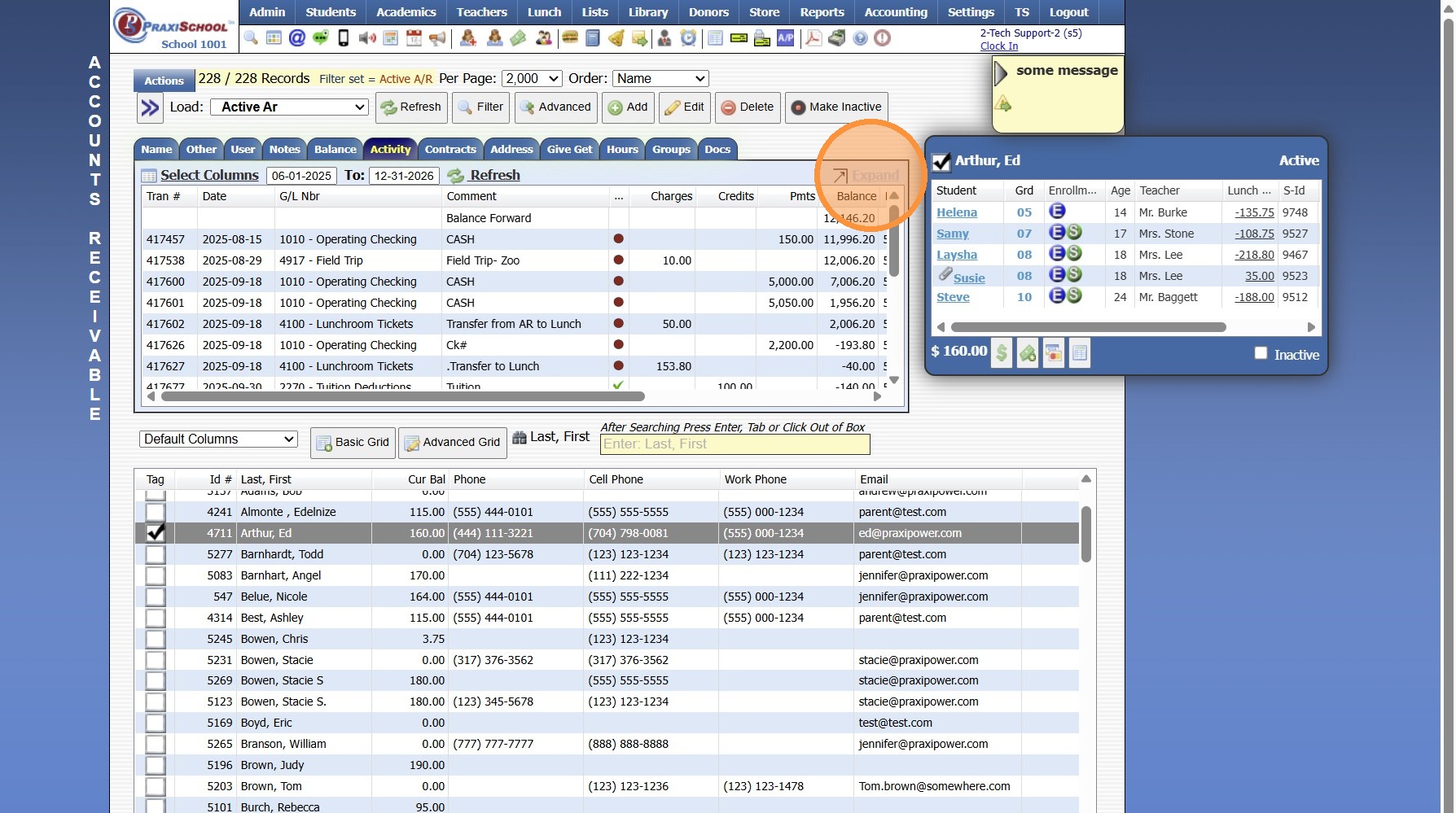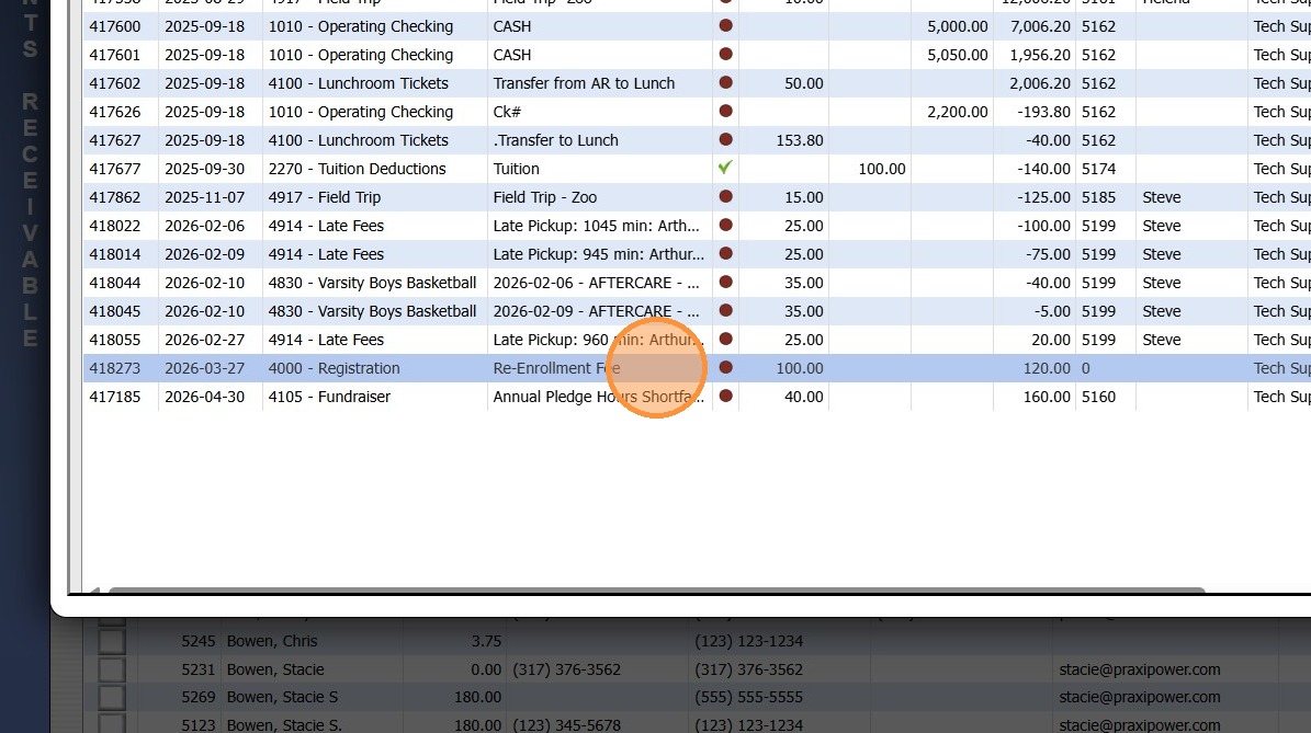 Adding a Transaction Item to a Student's AR Account Adding a Transaction Item to a Student's AR Account from Defined Items or Manually 1. Log into PraxiSchool 2. Click "Admin" 3. Click "Accounts Receivable" 4. Select Billing Account 5. Click $ to Add ...