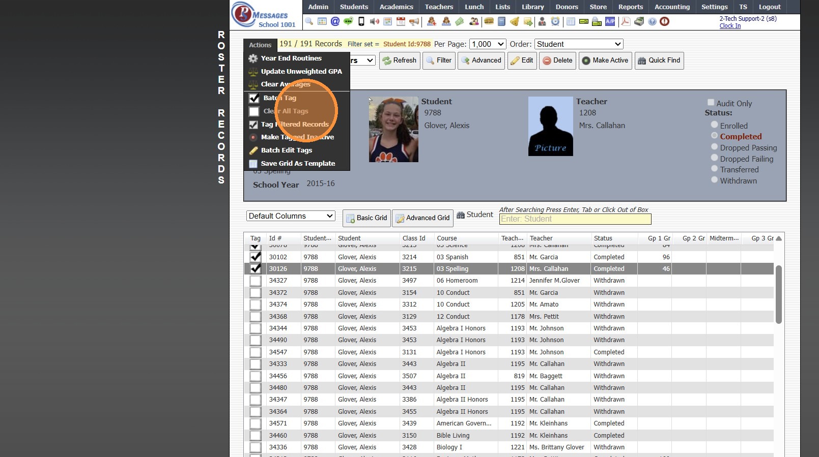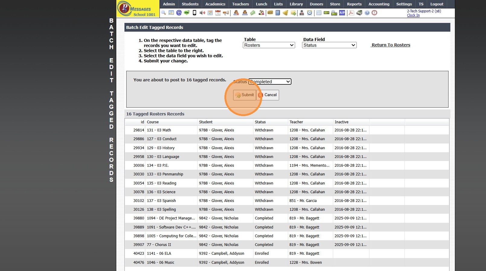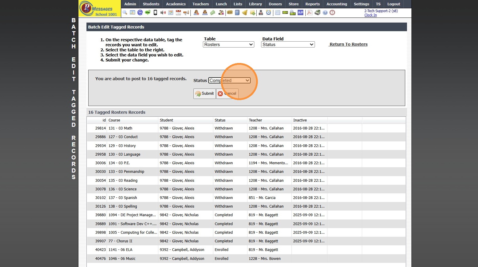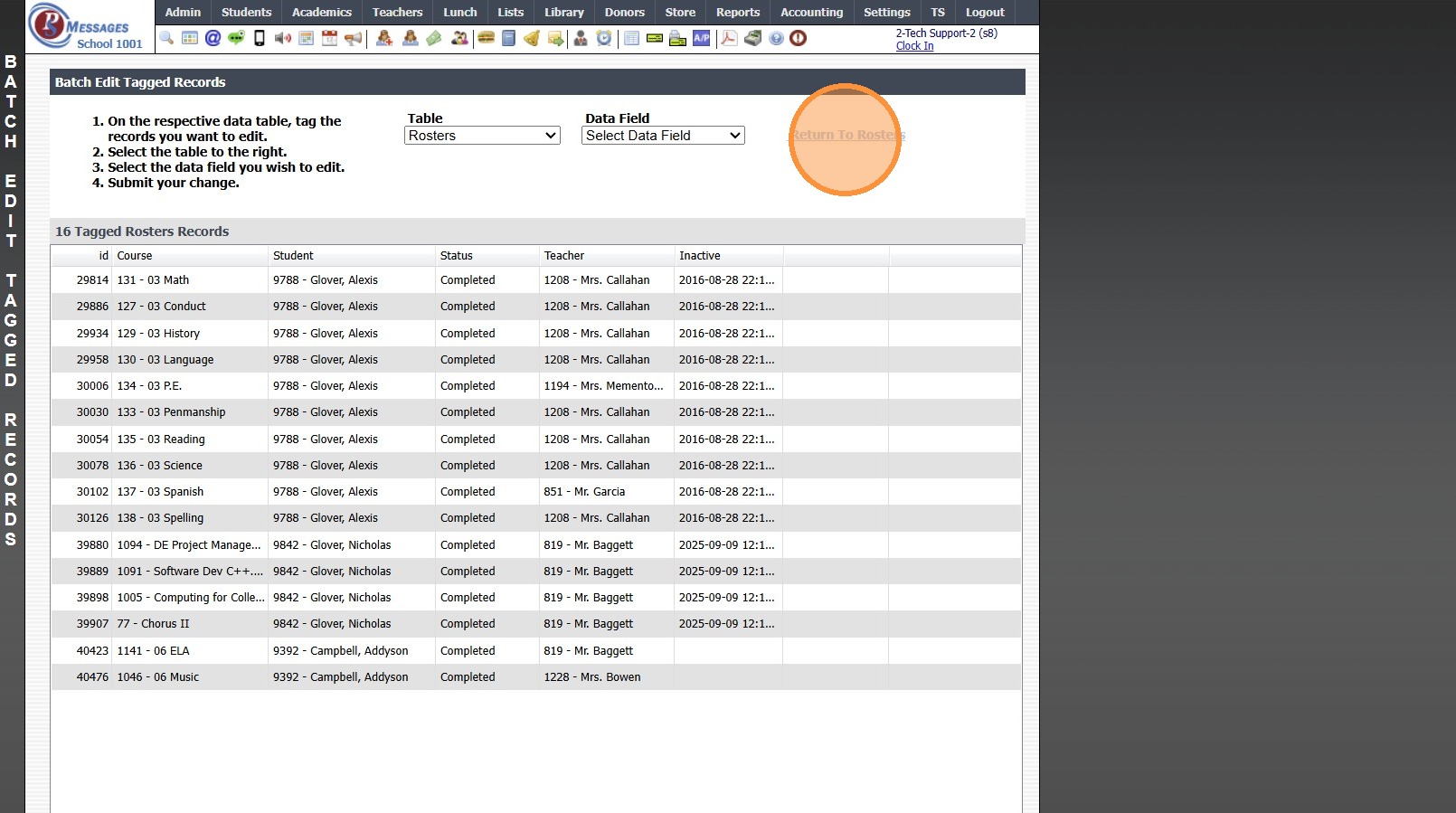 11. Tag Rosters to Mark Completed