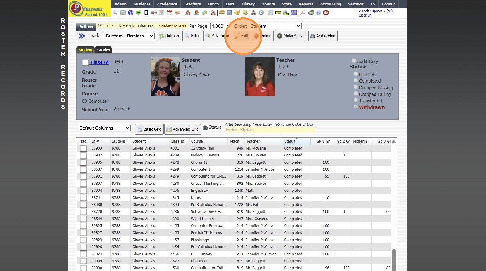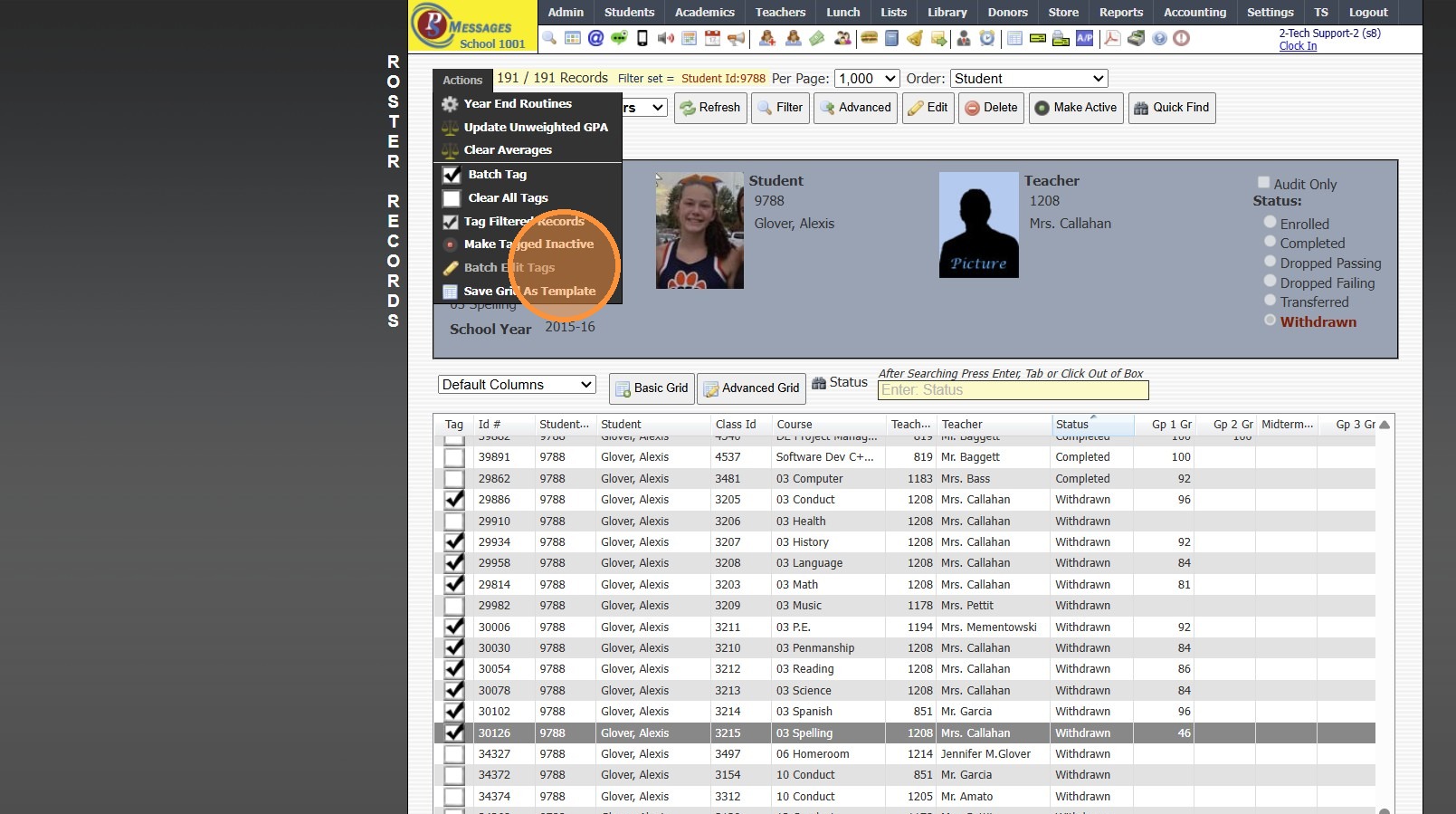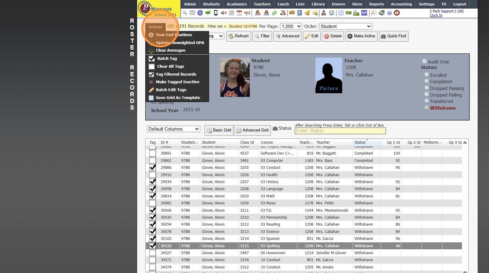Tip: When Withdrawing the Student, next to Clear Class Schedule, the default option of Completed was more than likely changed to Withdrawn. Follow Instructions below to mark Class Rosters to Completed.
