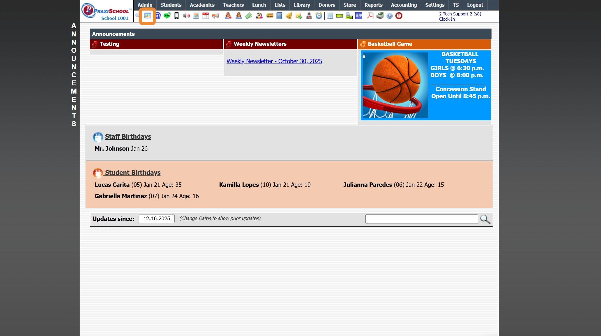 Icon Toolbar - Family Icon Click on the Family Icon for Quick Access to the Student Contacts / Family File 7500.1.13