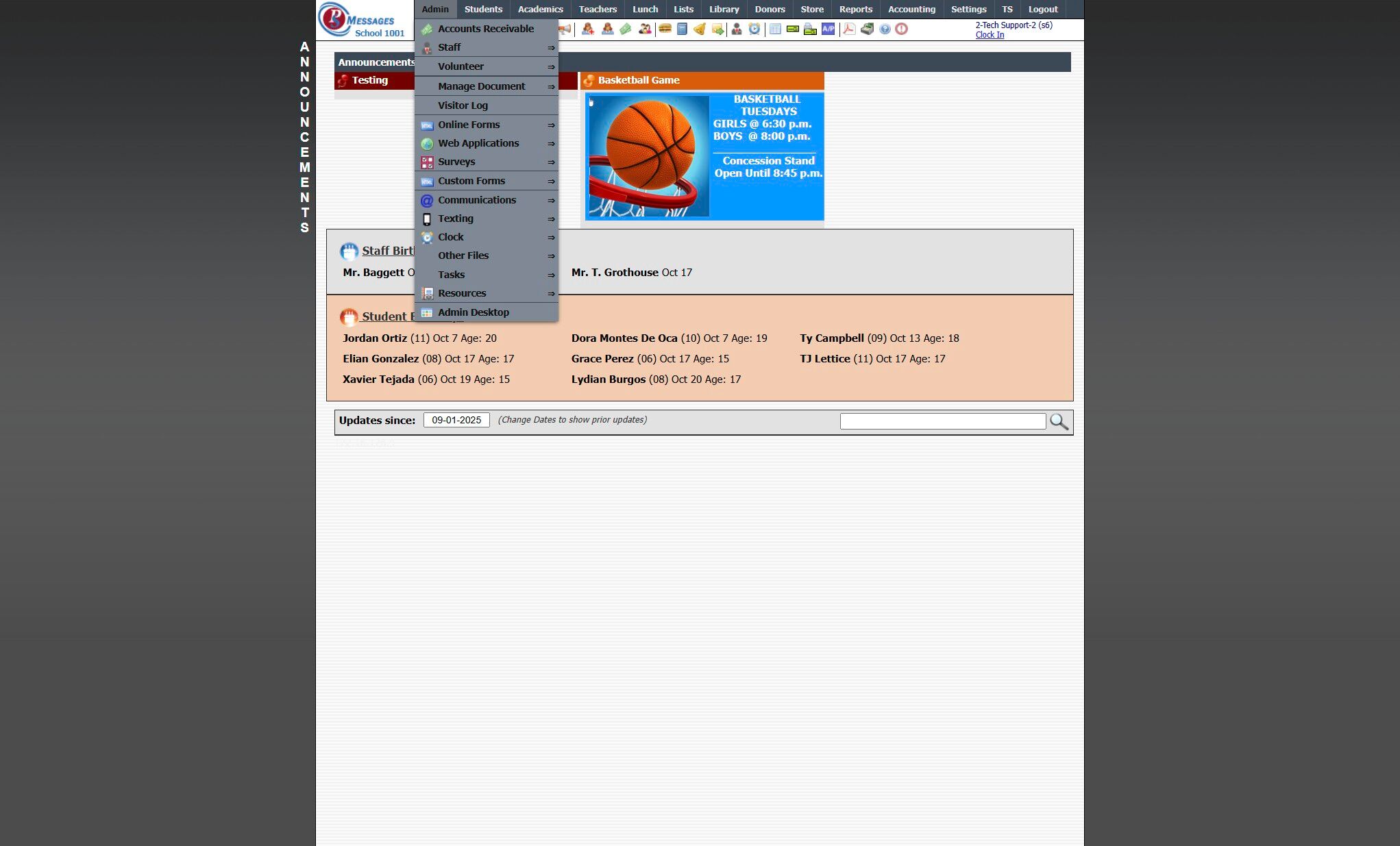Manually Entering Staff Attendance in Batch 1. Click "Admin" 2. Click "Staff" 3. Click "Staff Attendance Wizard" 4. Tag Staff to Add Attendance for 5. Select the Attendance Type 6. Click "Process # Selected Staff" 1000.2.7