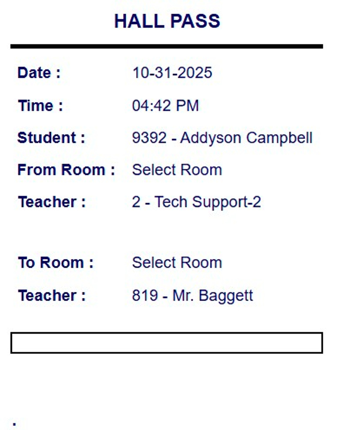 For Discipline - Hall Pass Issued for Student as a Result of a Discipline