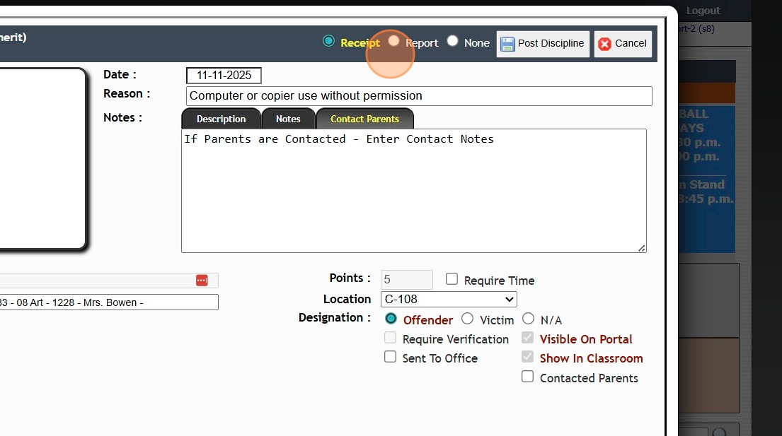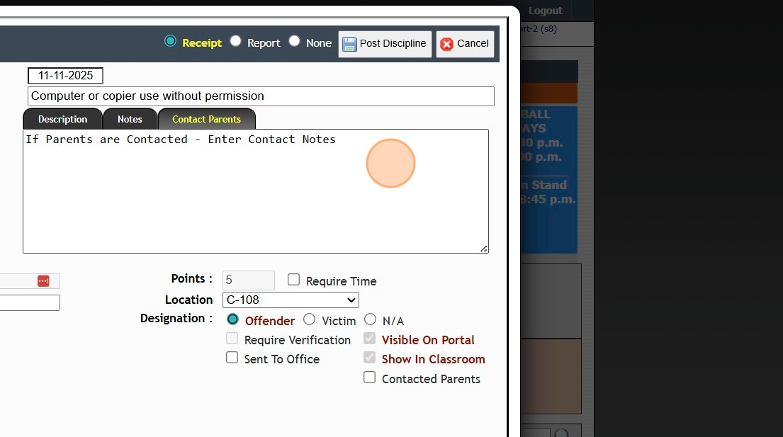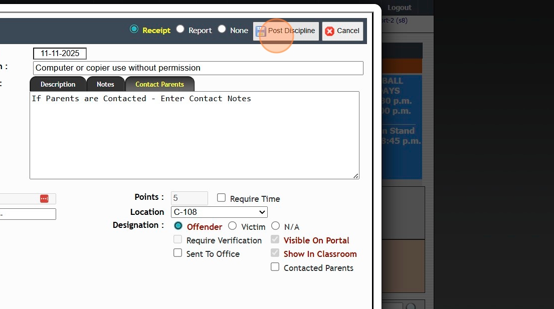 14. Click "Post Discipline"