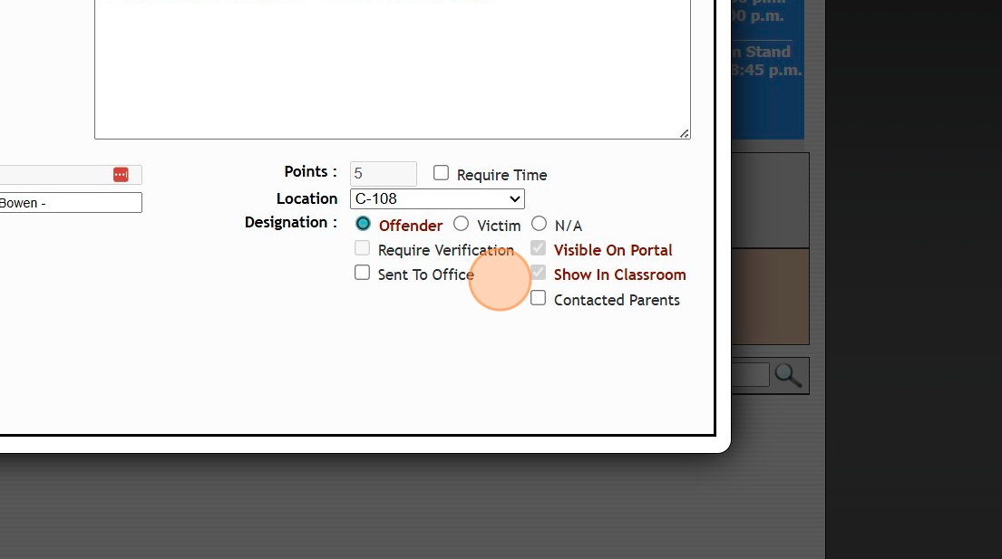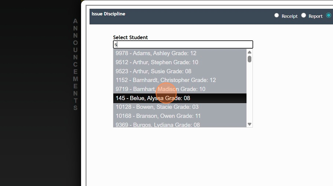 8. Select Teacher Issuing Discipline & Select Students Class