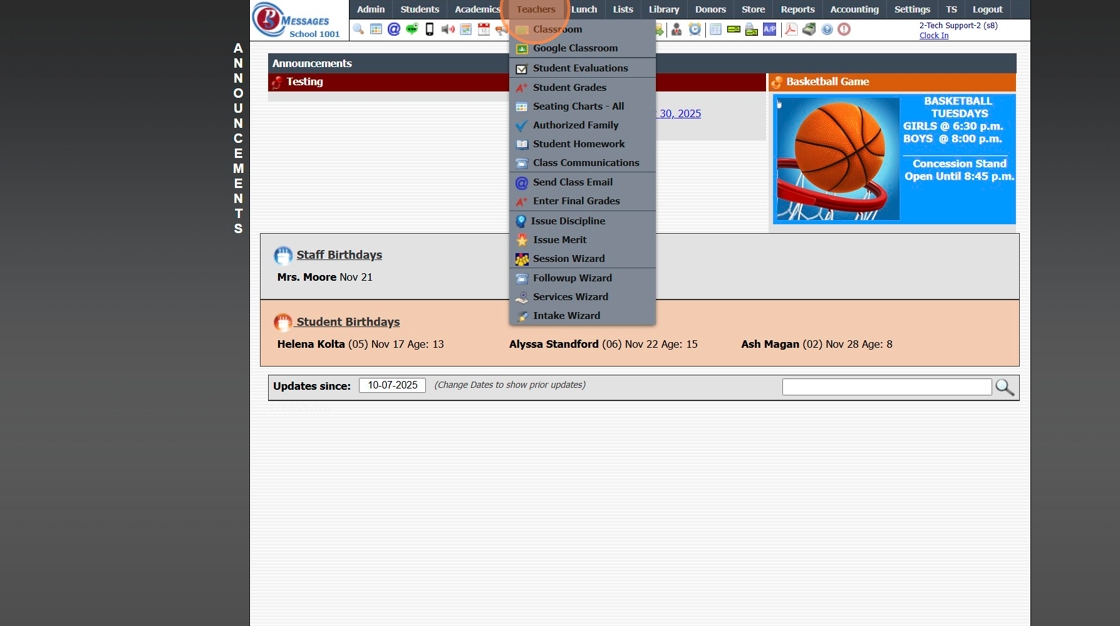 Issuing a Student Merit from Teachers Typically used to issue a Merit for a Student not in a Teachers class. 1. Click "Teachers" 2. Click "Issue Merit" 3. Select Student 4. Click "Continue" 5. Select Teacher Issuing Merit & Select Students Class 6. ...