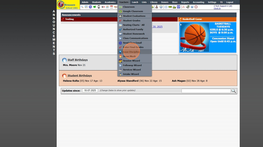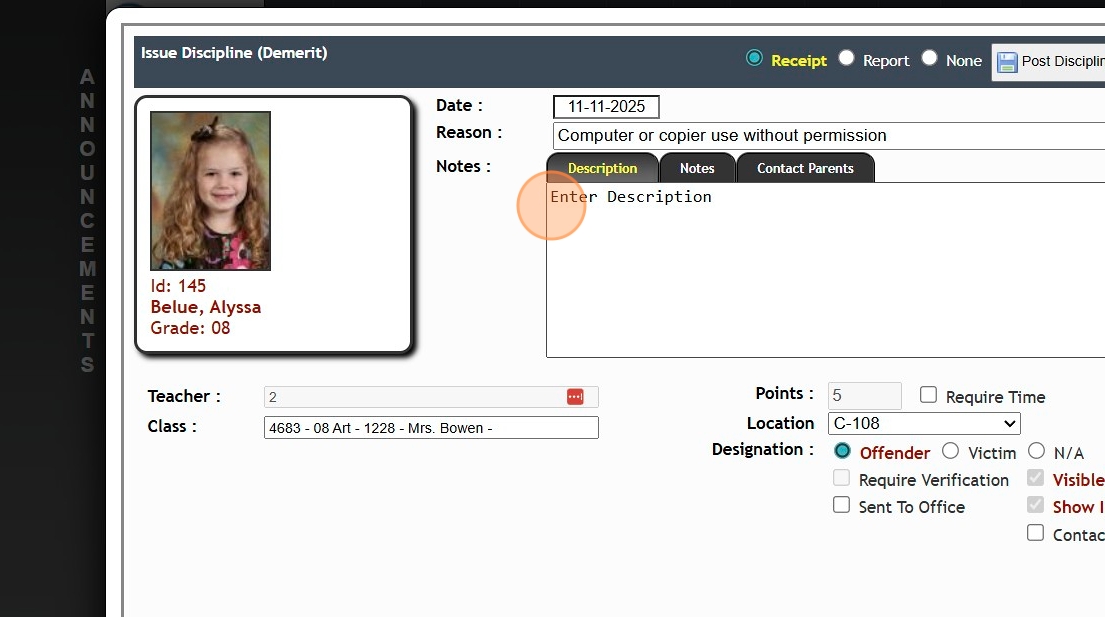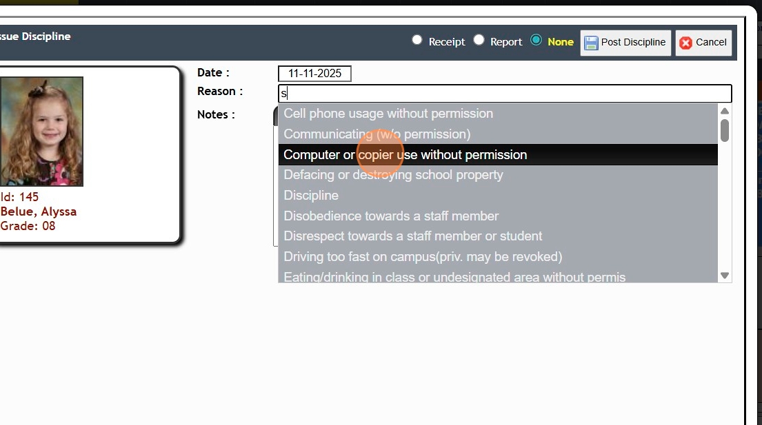 Issuing a Student Discipline from Teachers