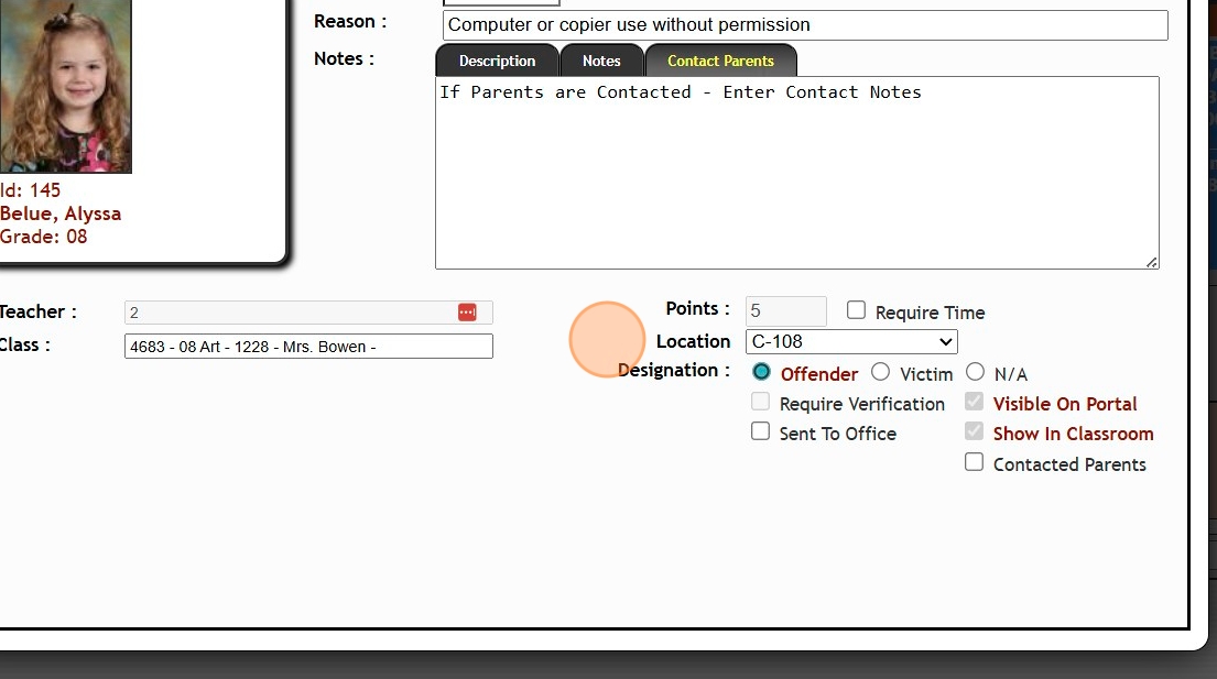 7. If Parents are Contacted - Enter Contact Notes