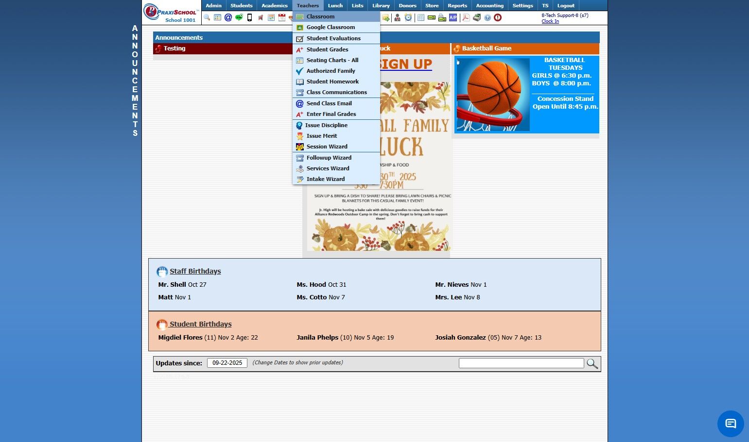 Issuing a Merit in the Classroom 1. Login to PraxiSchool 2. Click "Teachers" 3. Click "Classroom" 4. Click "Classroom" 5. Click "Class Info" 6. Left Click the Student Profile 7. Click "Issue Merit" 8. Select Merit Type from the Dropdown 9. Type the ...