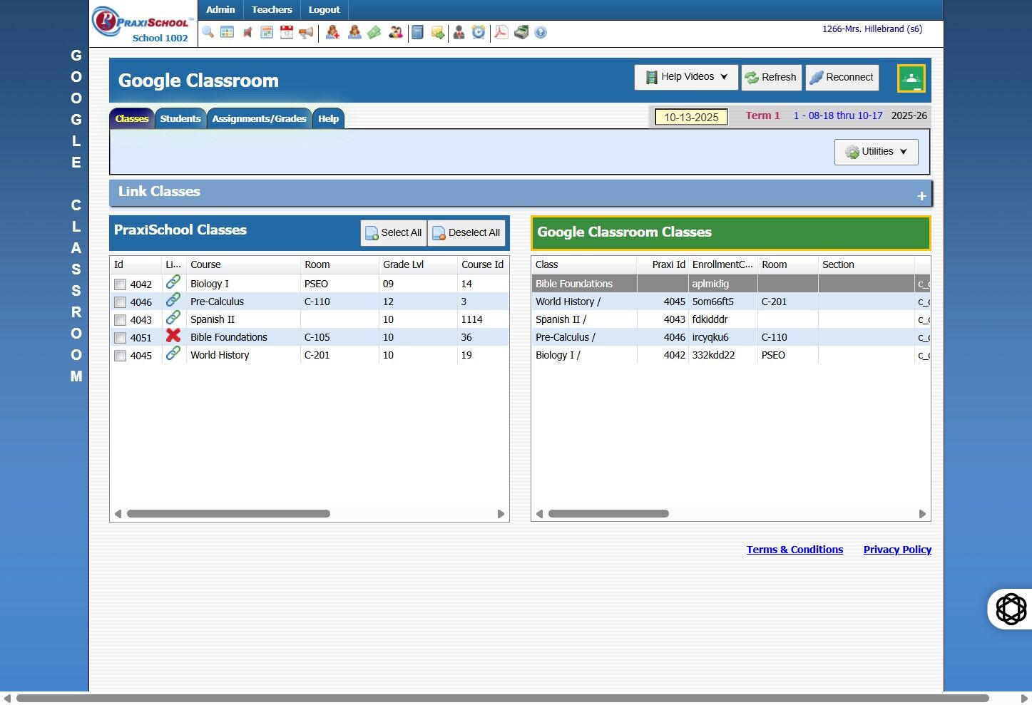 Linking/Unlinking Assignments between PraxiSchool and Google Classroom