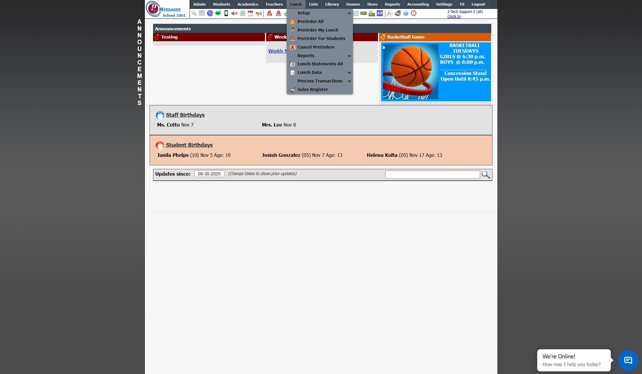 7. When Lunch Turn Ins are Processed, the Data Posts to the Lunch Accounts Receivable Account