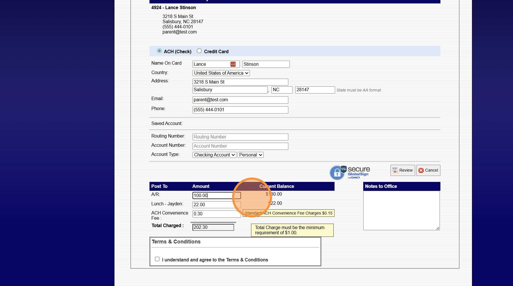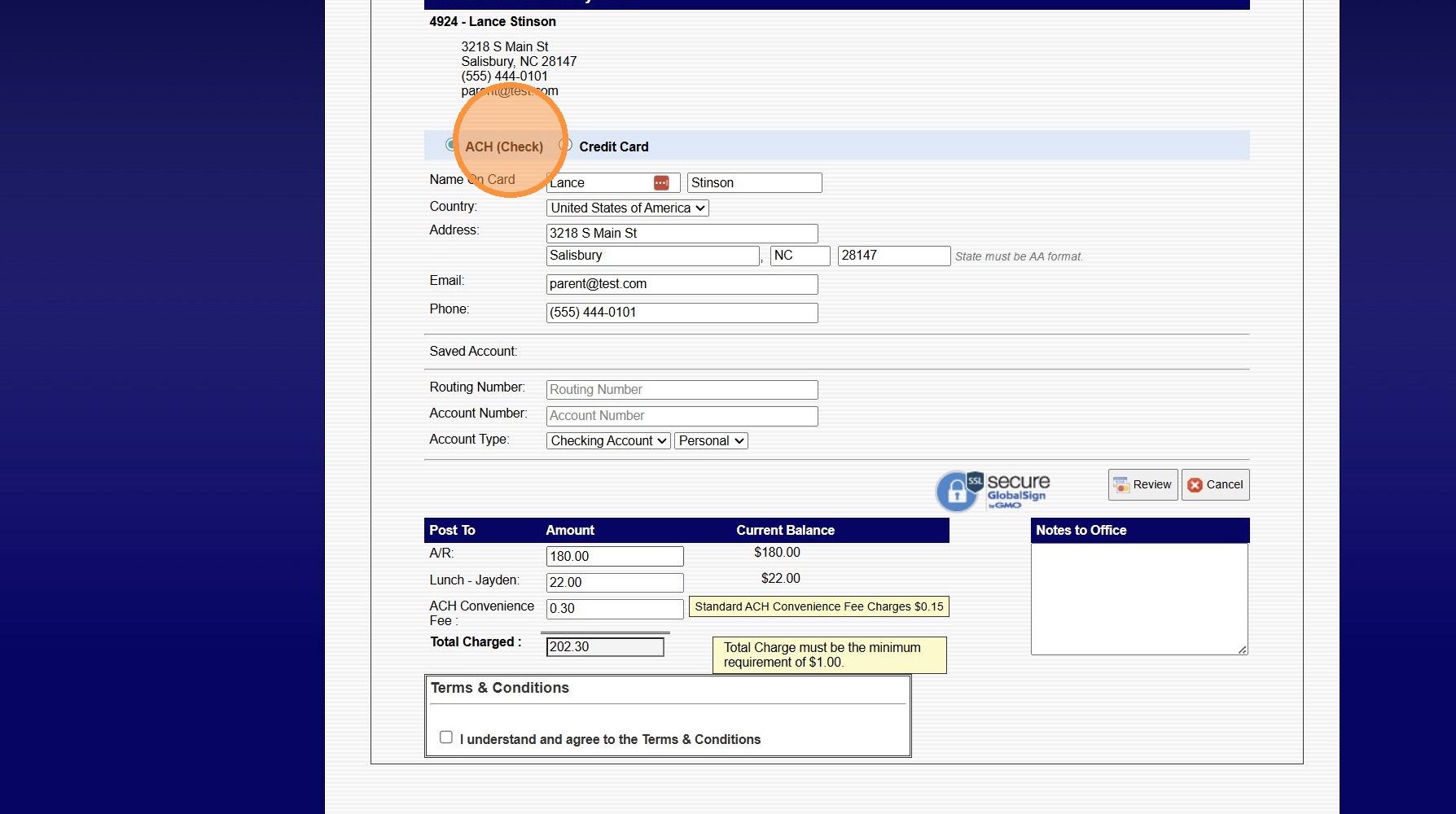 3. Select ACH or Credit Card