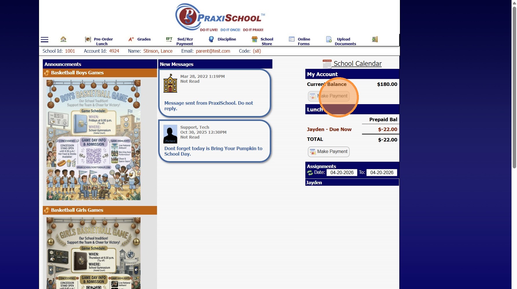 Making an AR/Lunch Payment on the Parent Portal