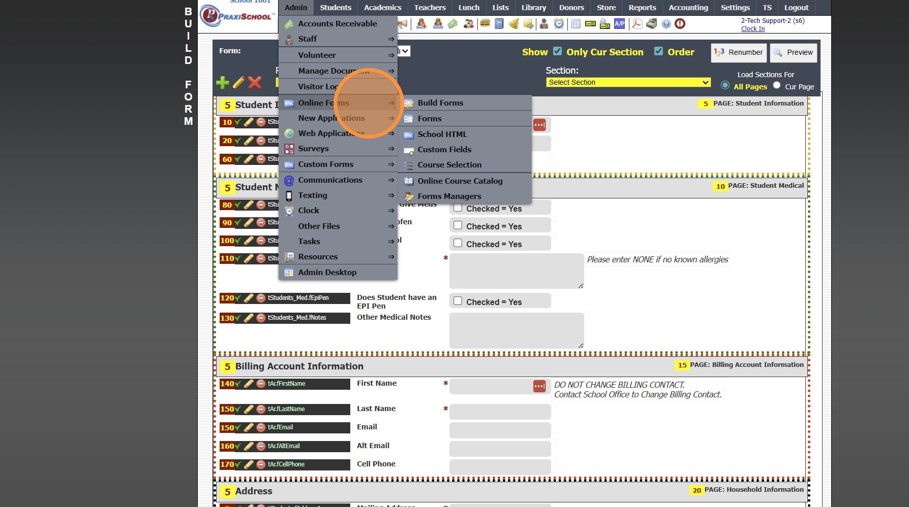 Example Re-Enrollment Form 1. Click "Admin" 2. Click "Online Forms" 3. Click "Build Forms" 4. Select Form 5. Click the "+" Icon to Add a Page 6. Enter the Order Number (Recommendation: Set Order Numbers in Increments of 5 or 10 to Allow Additional ...