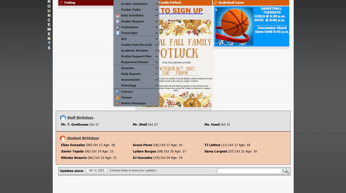 Selecting a Grade Period Date in the Classroom 1. Click "Teachers" 2. Click "Classroom" 3. Click the Date Field and Select the Date in the Grade Period 2500.1.2