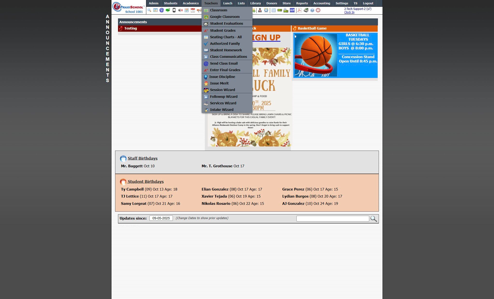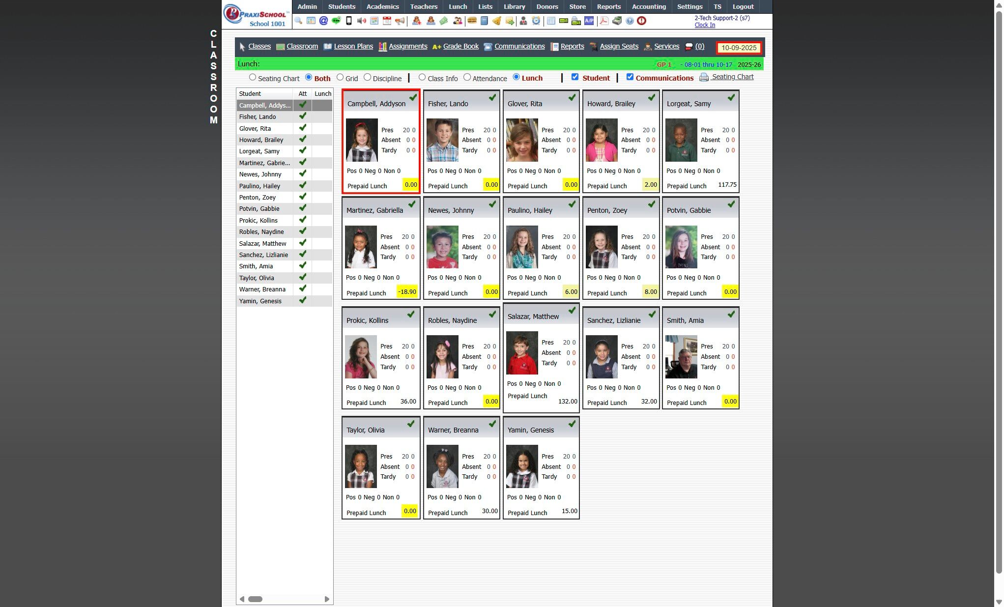 View Lunch Orders From Classroom 1. Log into PraxiSchool 2. Click "Teachers" 3. Click "Classroom" 4. Select Class 5. Click "Classroom" 6. Click the "Lunch" Toggle 7. Left Click on Student 8. Click "View Order" to View Selected Students Lunch Order 9. ...