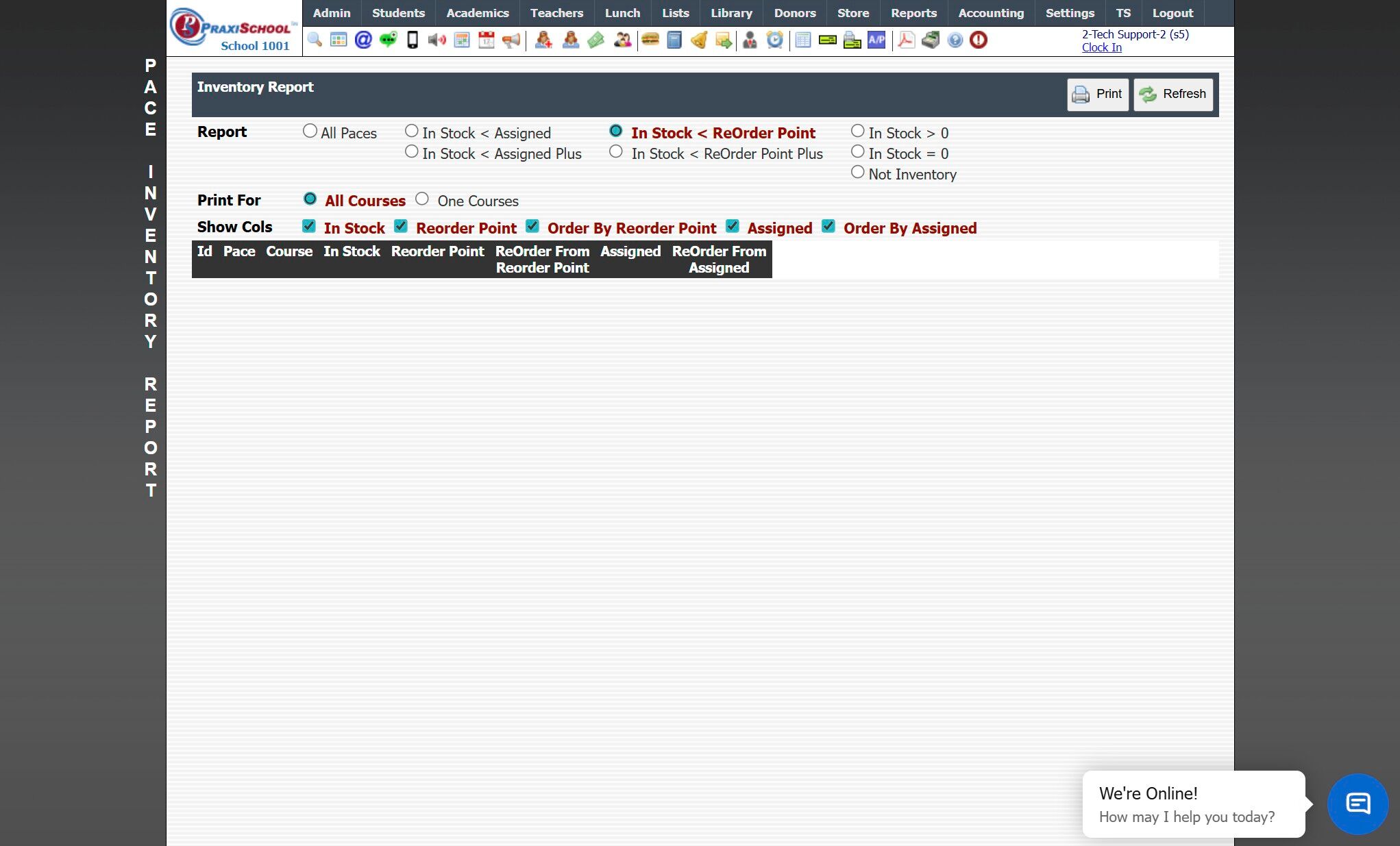 8. PACE Inventory Report Populates on Screen