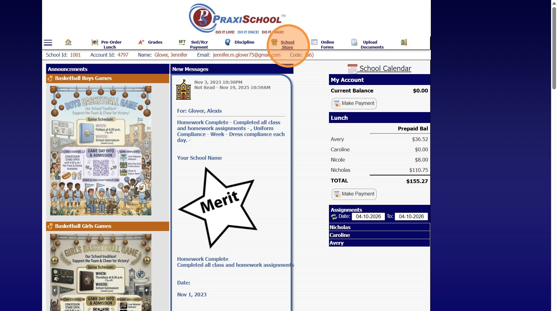 Placing Store Orders from the Parent Portal Without Payment Requirements