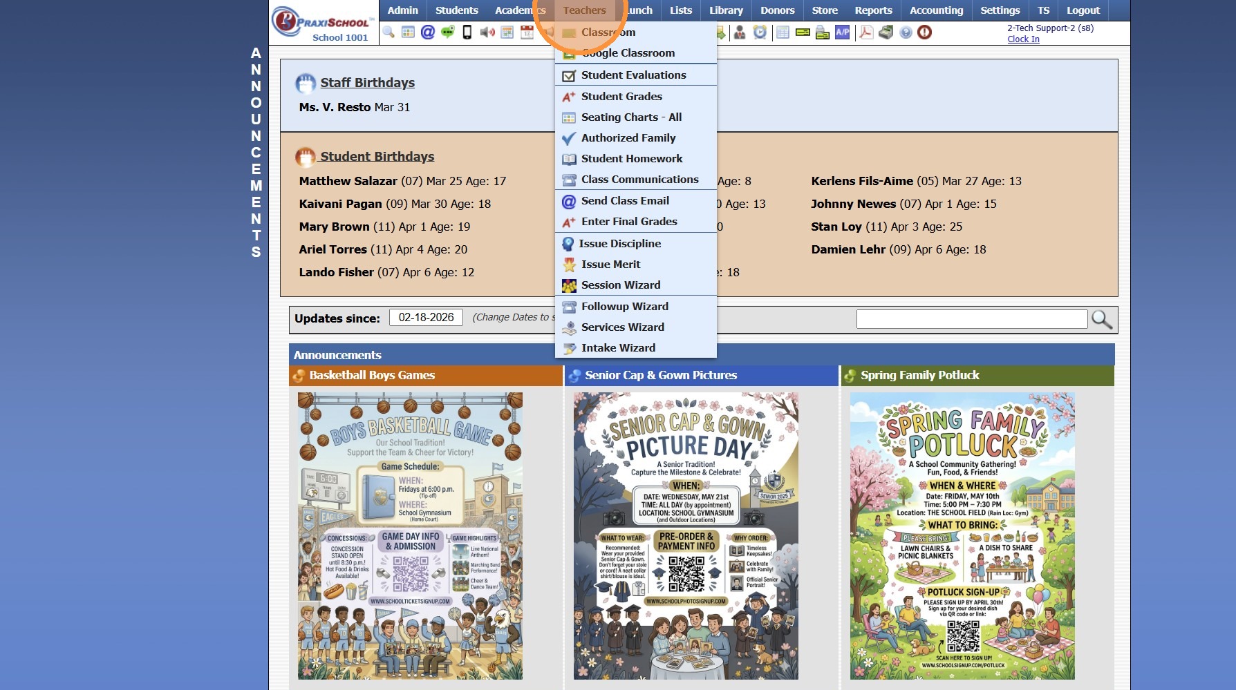 Entering Assignment Grades Using Max Score Max Score can be used to enter the maximum score for each Student. (Ex. a Homework Assignment earns a 100% if turned in and all Students turned in the Assignment) 1. Log into PraxiSchool 2. Click "Teachers" ...