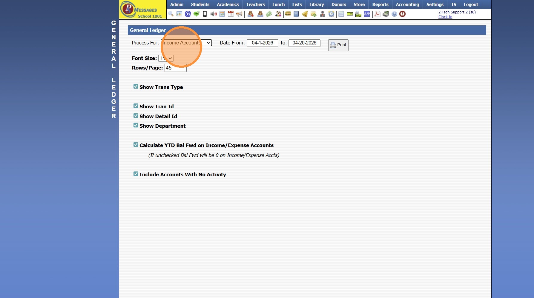 Print, Email, Export or Generate a PDF General Ledger Report (Income Accounts)