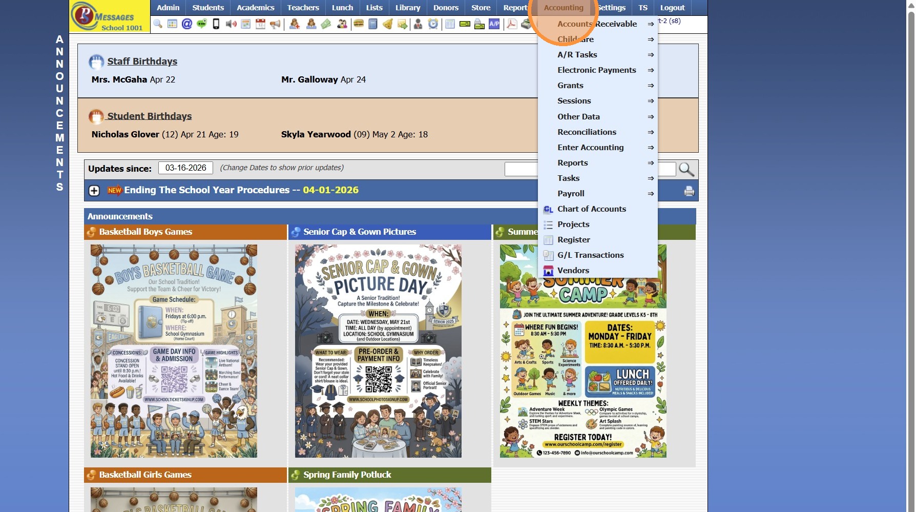 4. Select "Income Accounts" from Dropdown Menu