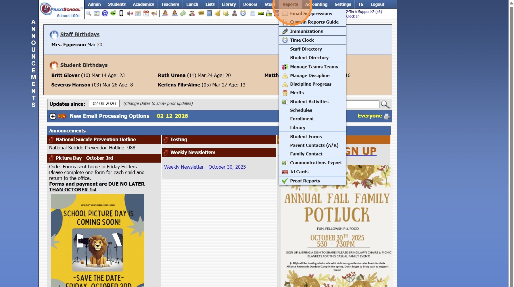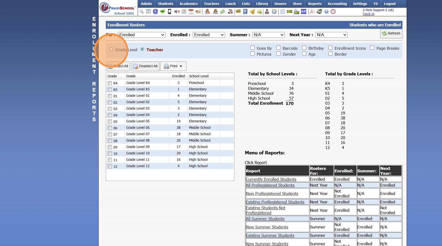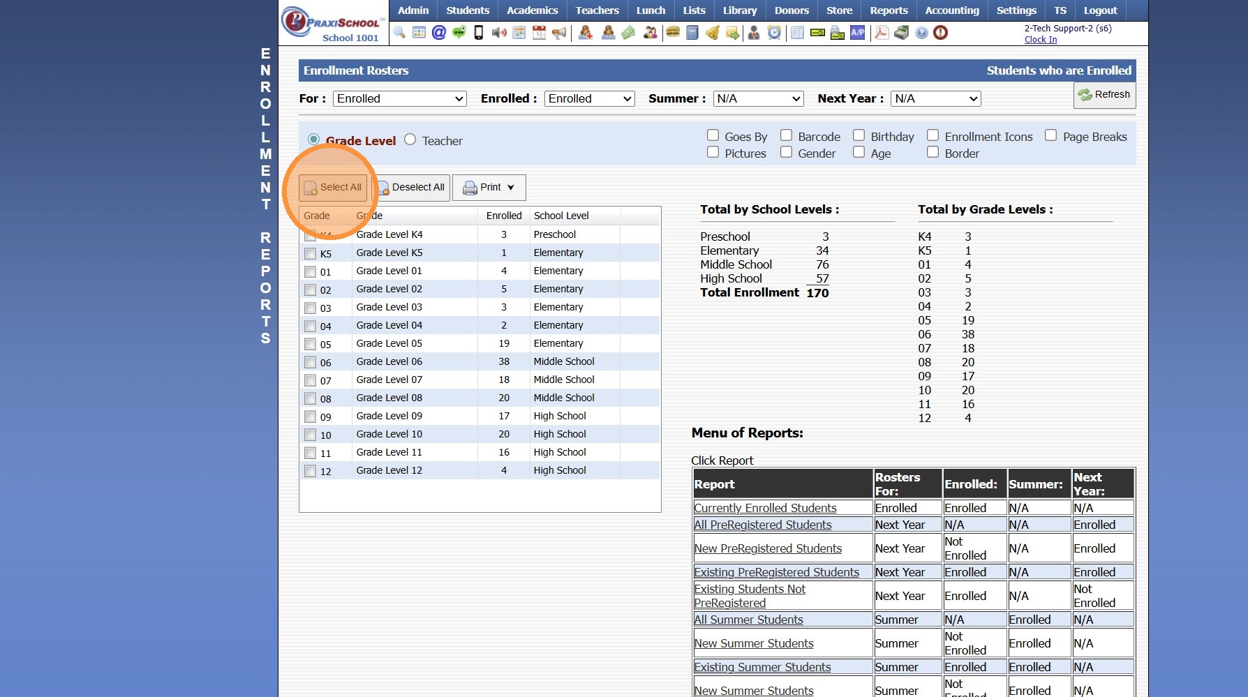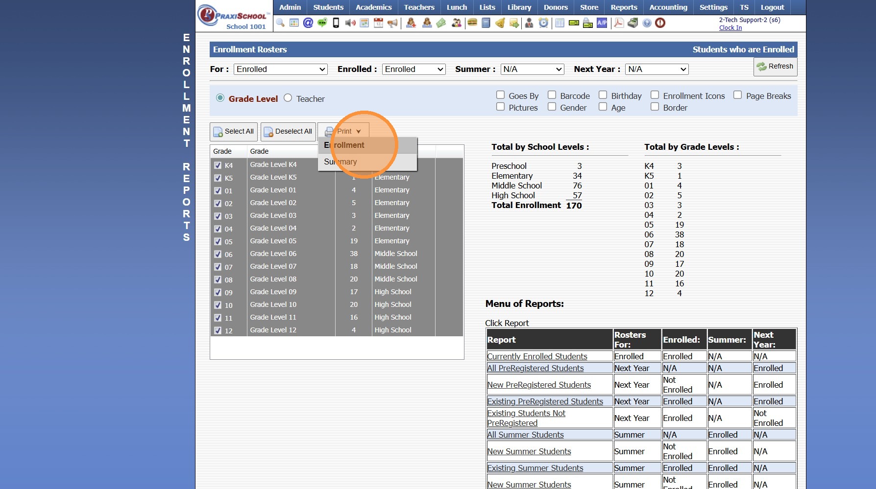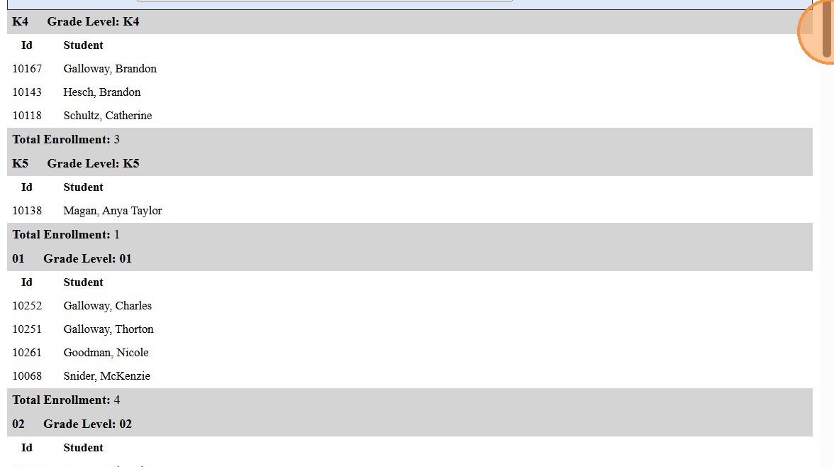 Printing a Current Year Enrollment List by Grade Level, Listing Students Alphabetically