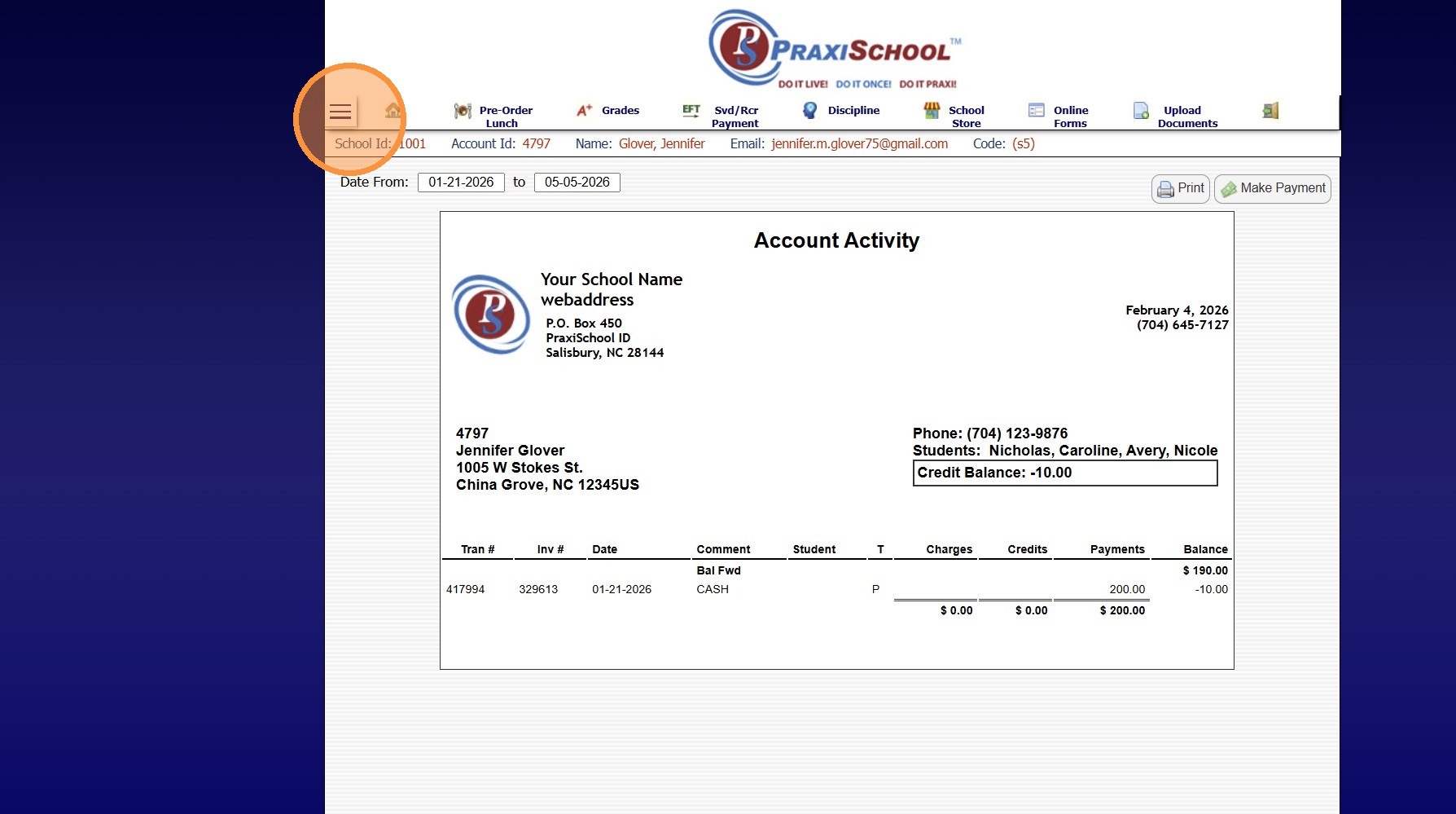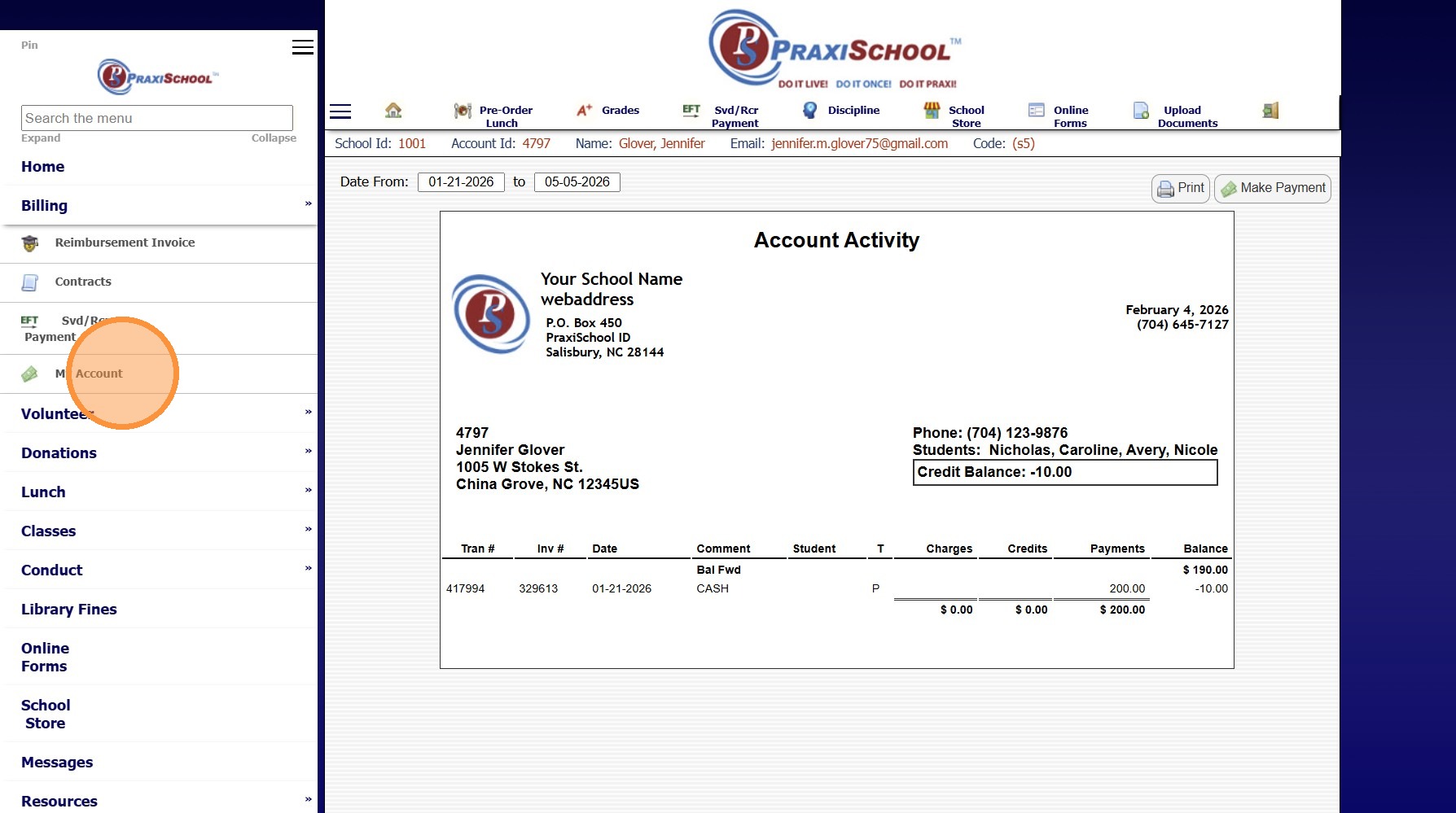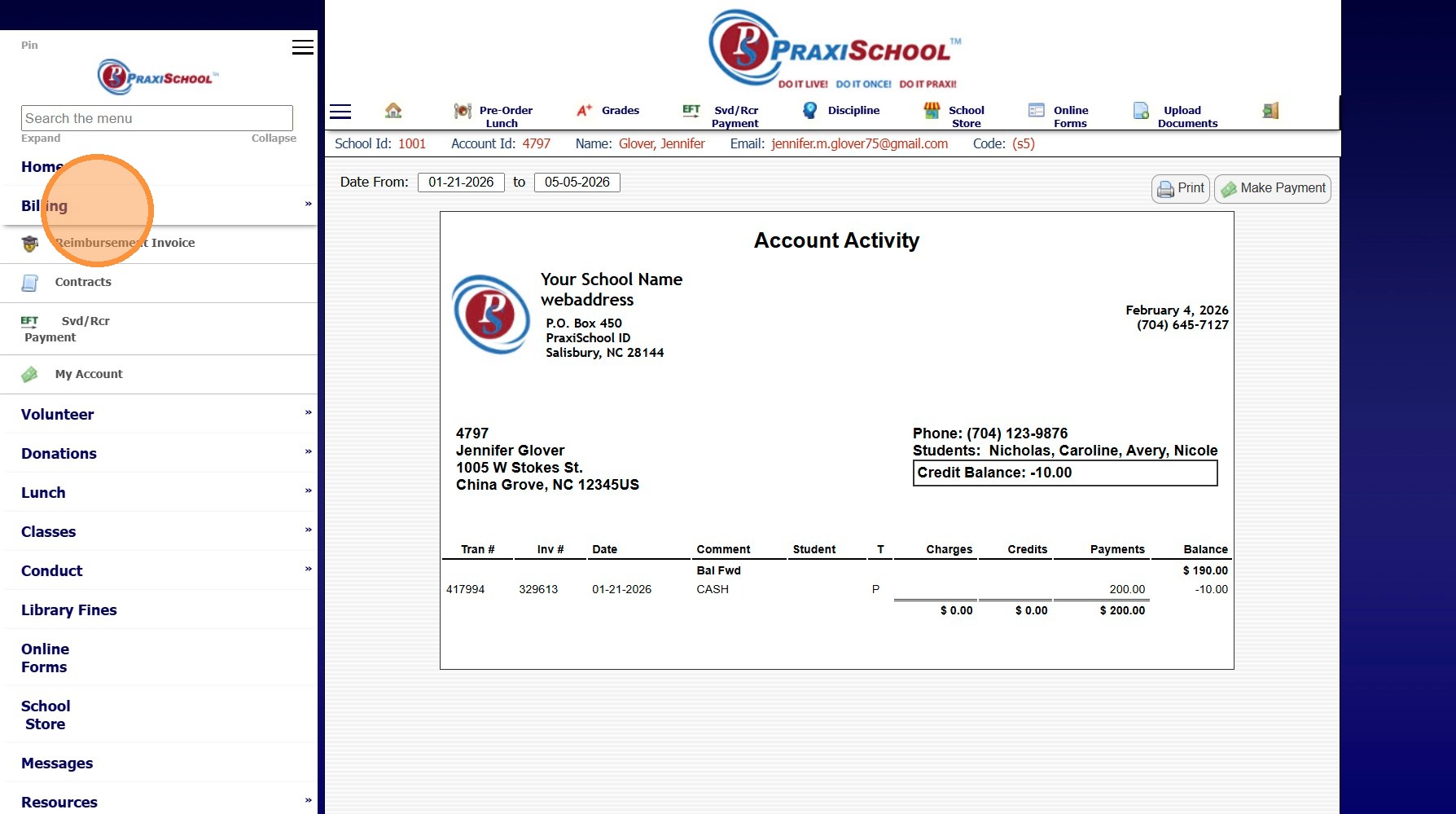 Update Parent Portal and Mobile App Access in Batch 1. Log into PraxiSchool 2. Click "Accounts Receivable" 3. Click "Actions" Assigning Parent Portal Access in Batch 4. Click "Update Portal Access" 5. Click the "Active" field. 6. Click the "Portal ...