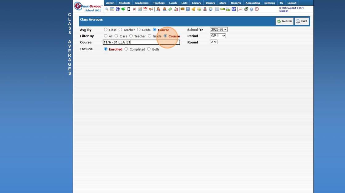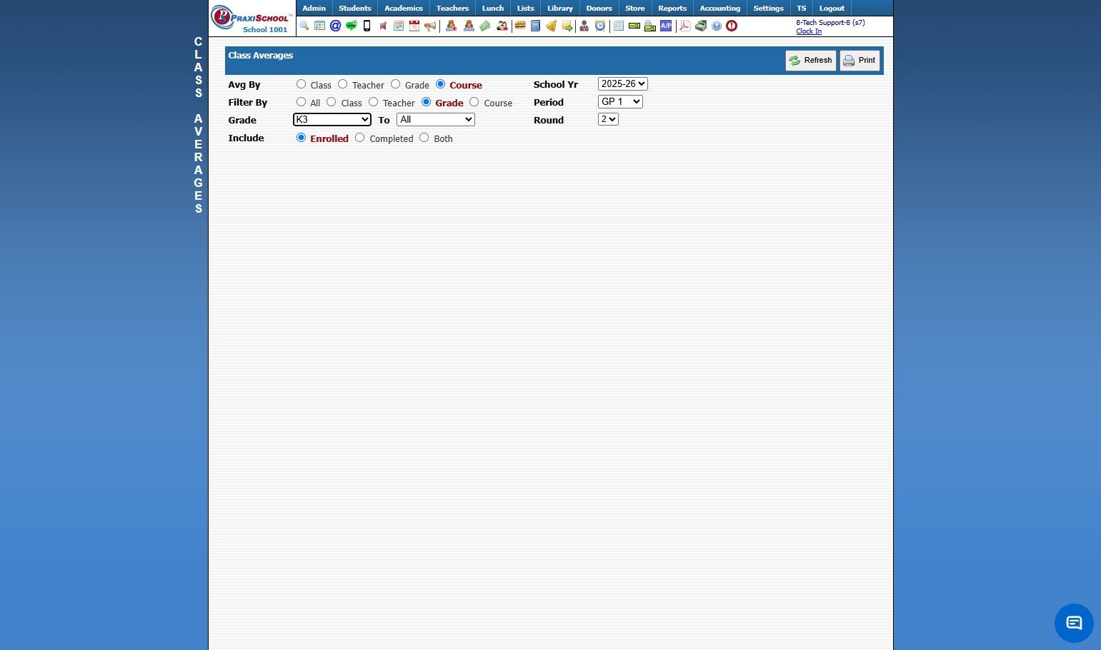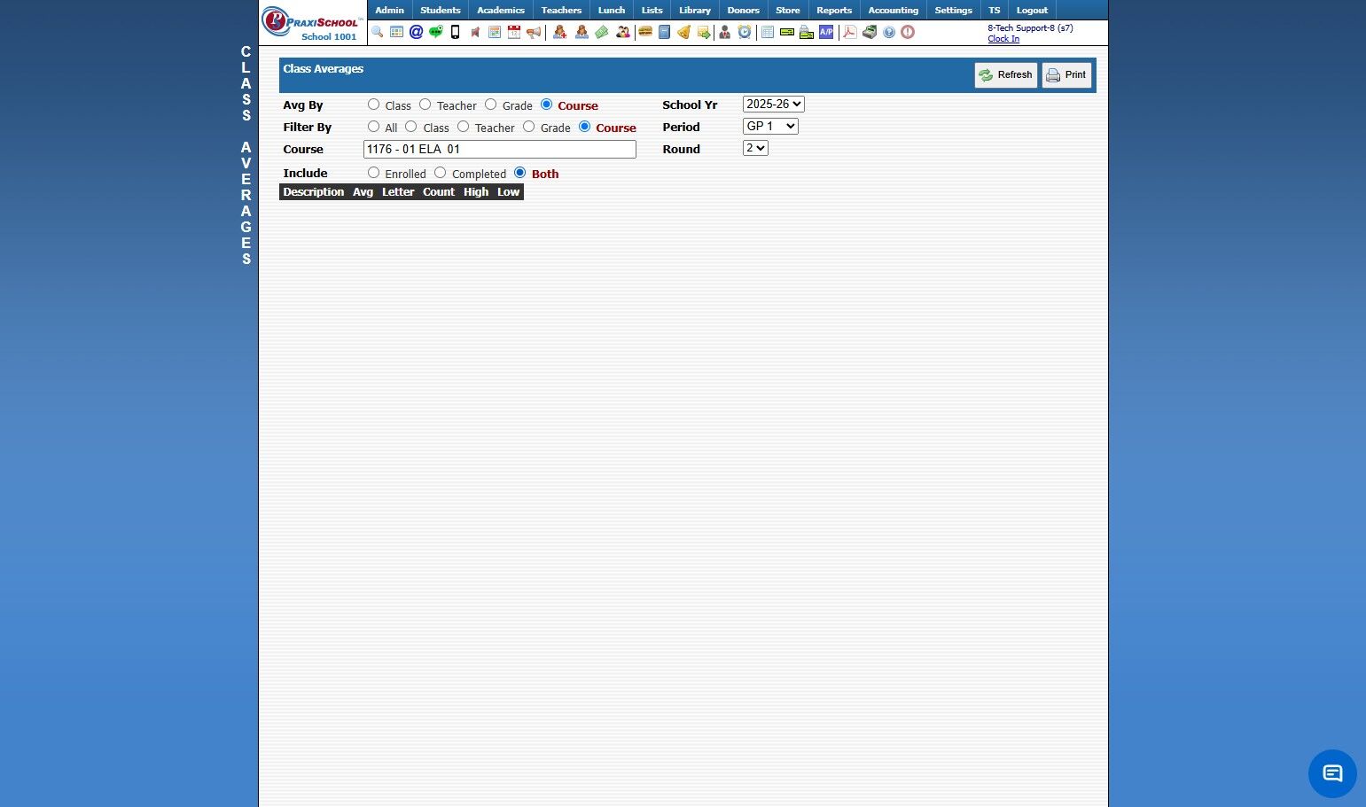 18. Click "All" to Average ALL Classes, Grade Levels, Teacher, Grade or Course