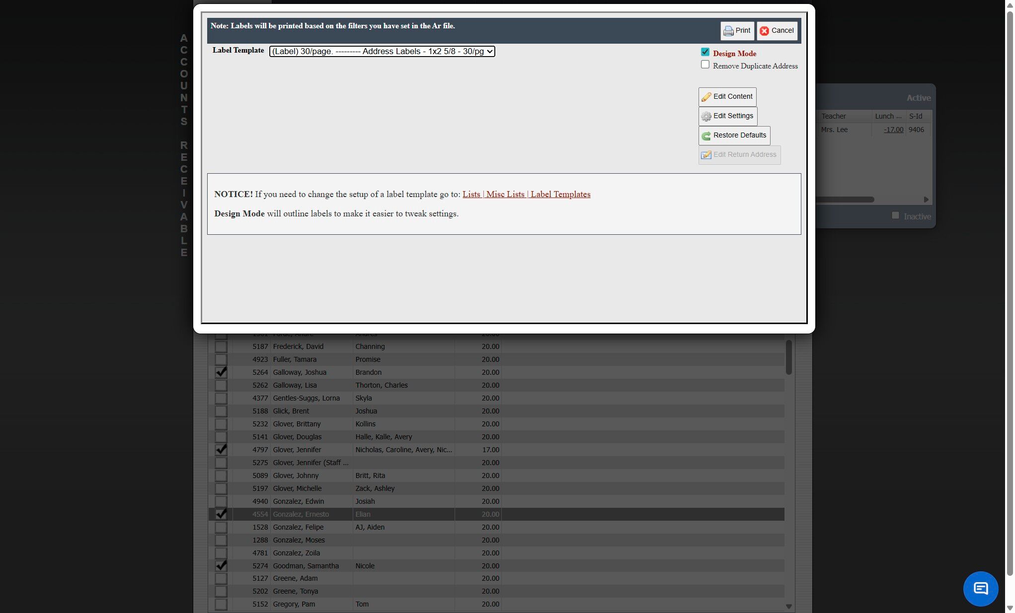 7. Click "Design Mode" to Print with Lines to Align Labels (Optional)
