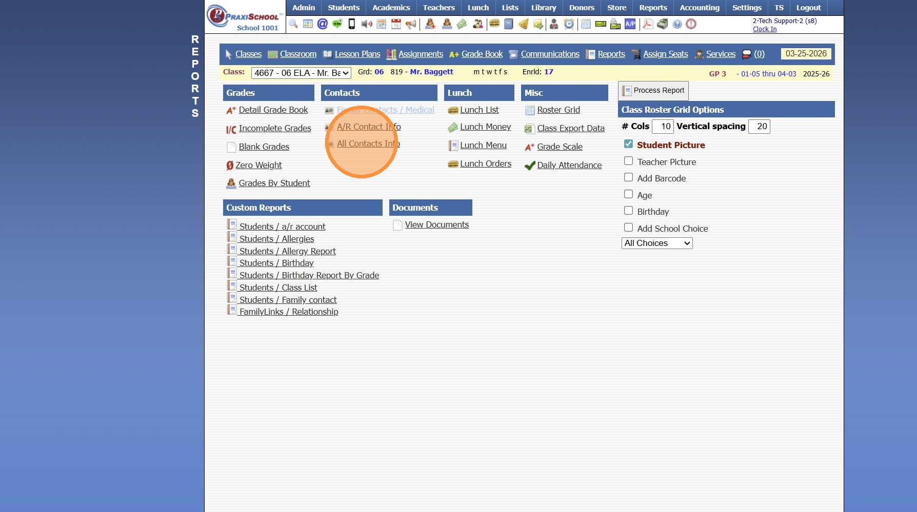 Printing Student Contacts in the Classroom - AR Contact Info