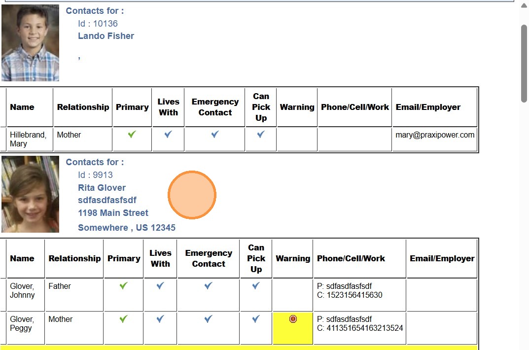 Printing Student Contacts in the Classroom - Family & Medical