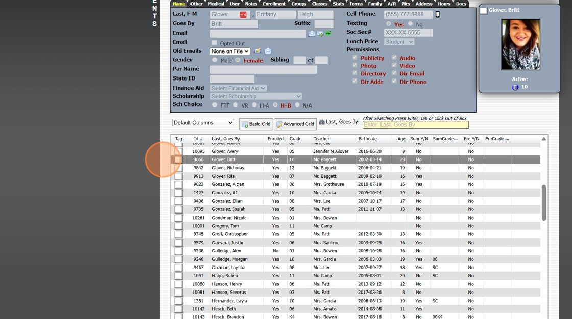 (Student Permanent Record)