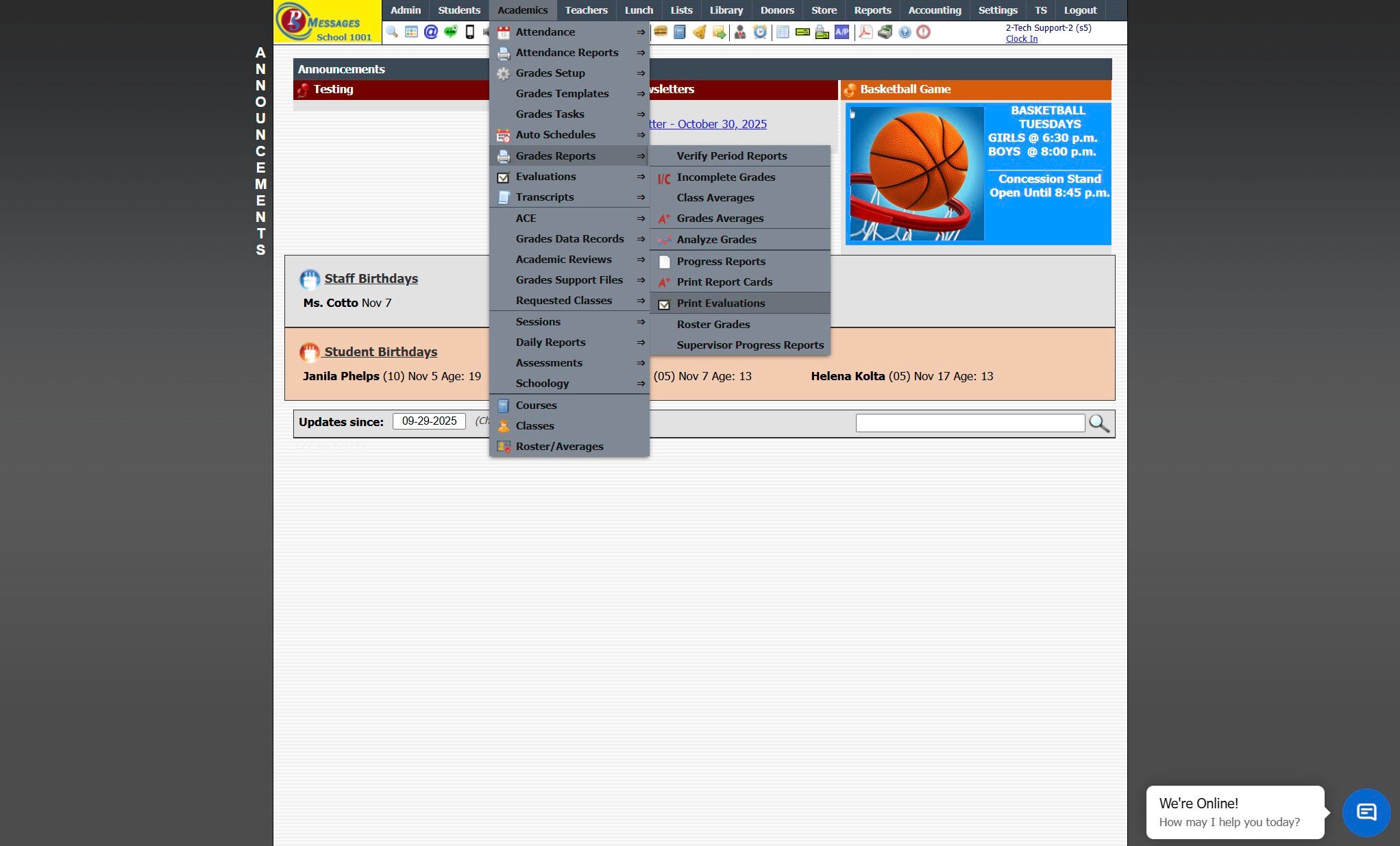 Closing Student Evaluations 1. Click "Teachers" 2. Click "Student Evaluations" 3. Select "Template" 4. Select "Class" 5. Select "Class" 6. Click "Close "#" Evaluations" 7. 2500.3.4