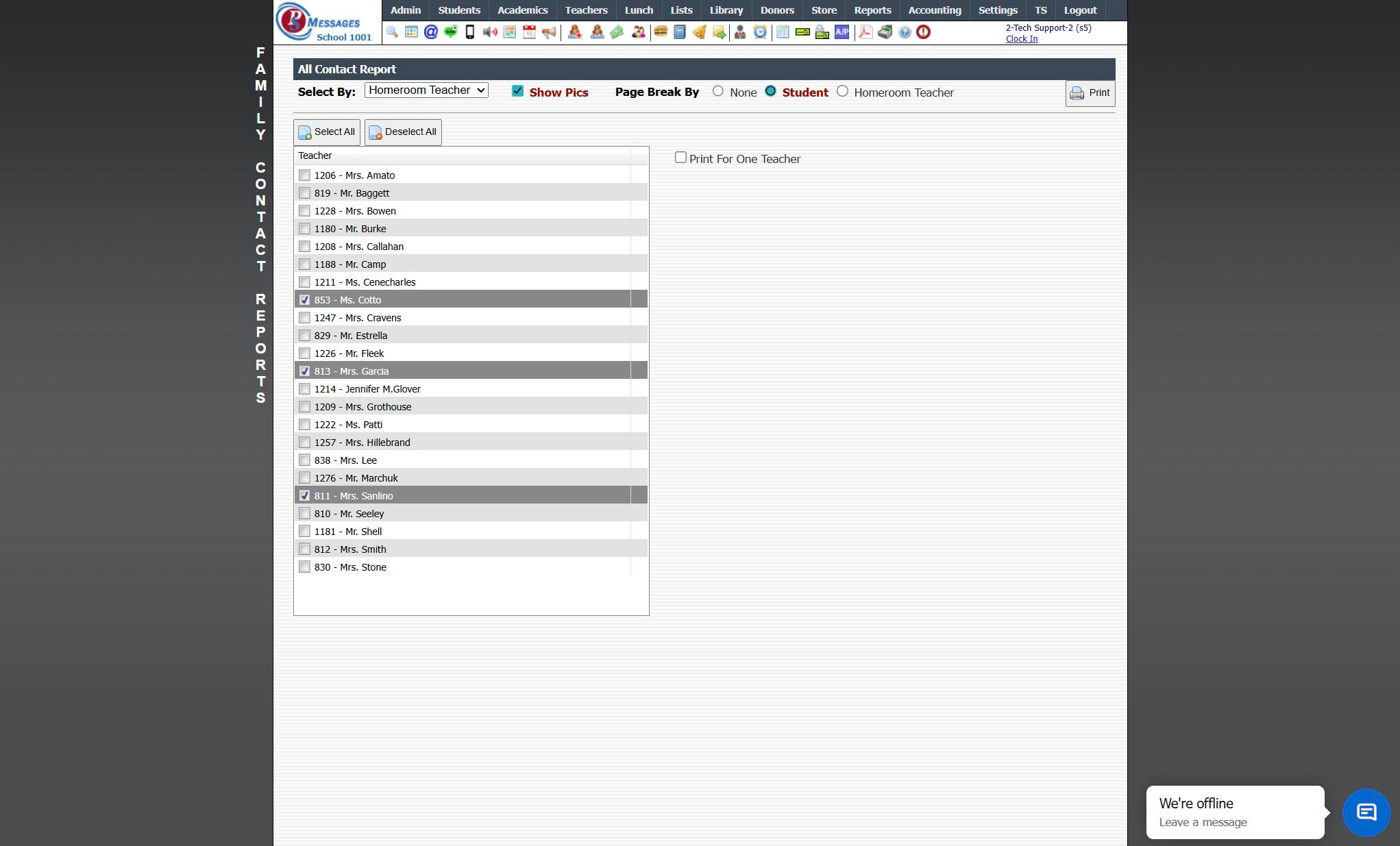 Printing Student Family Contacts Report 1. Click "Reports" 2. Click "Family Contact" 3. Select to Print by Homeroom Teacher, Grade Level or Class 4. Select All to Print for All Homeroom Teacher, Grade Level or Class 5. Report can be printed for one ...