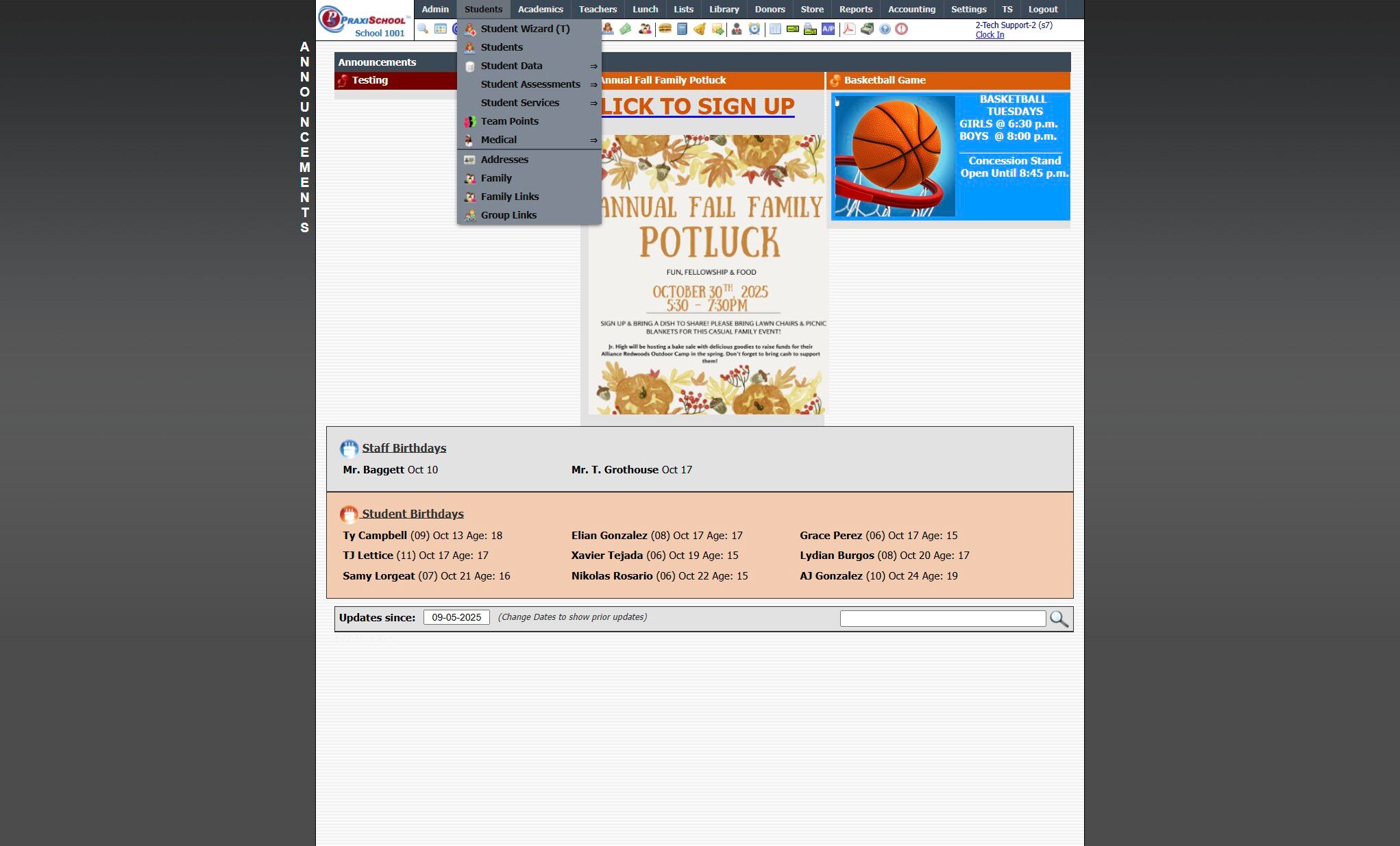 Printing Student Contact Sheets in Batch 1. Log into PraxiSchool 2. Click "Students" 3. Click "Students" 4. Click "Actions" 5. Click "Contact Sheets" 6. Select Print For Option (Single, Active, Tagged, Grade Level, Class OR Homeroom Teacher) 7. ...
