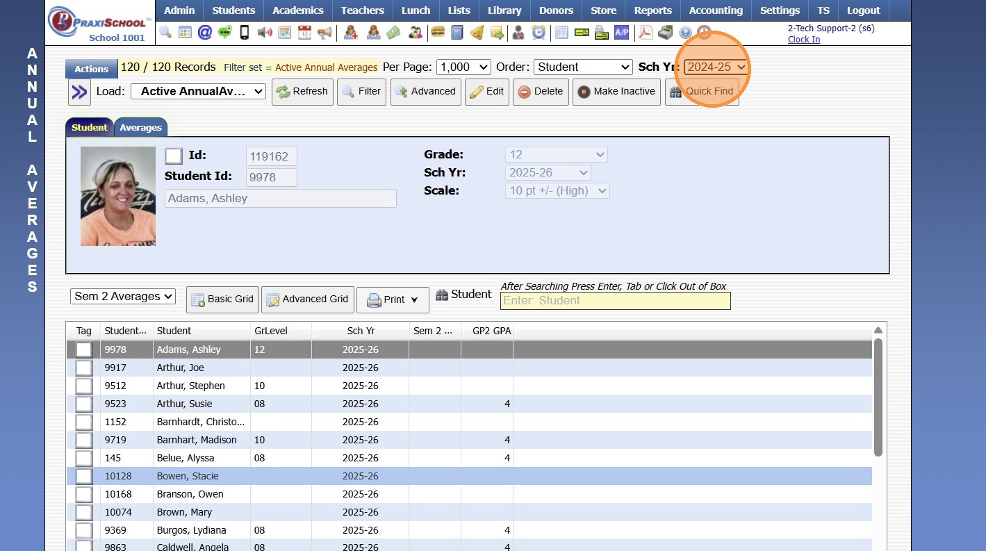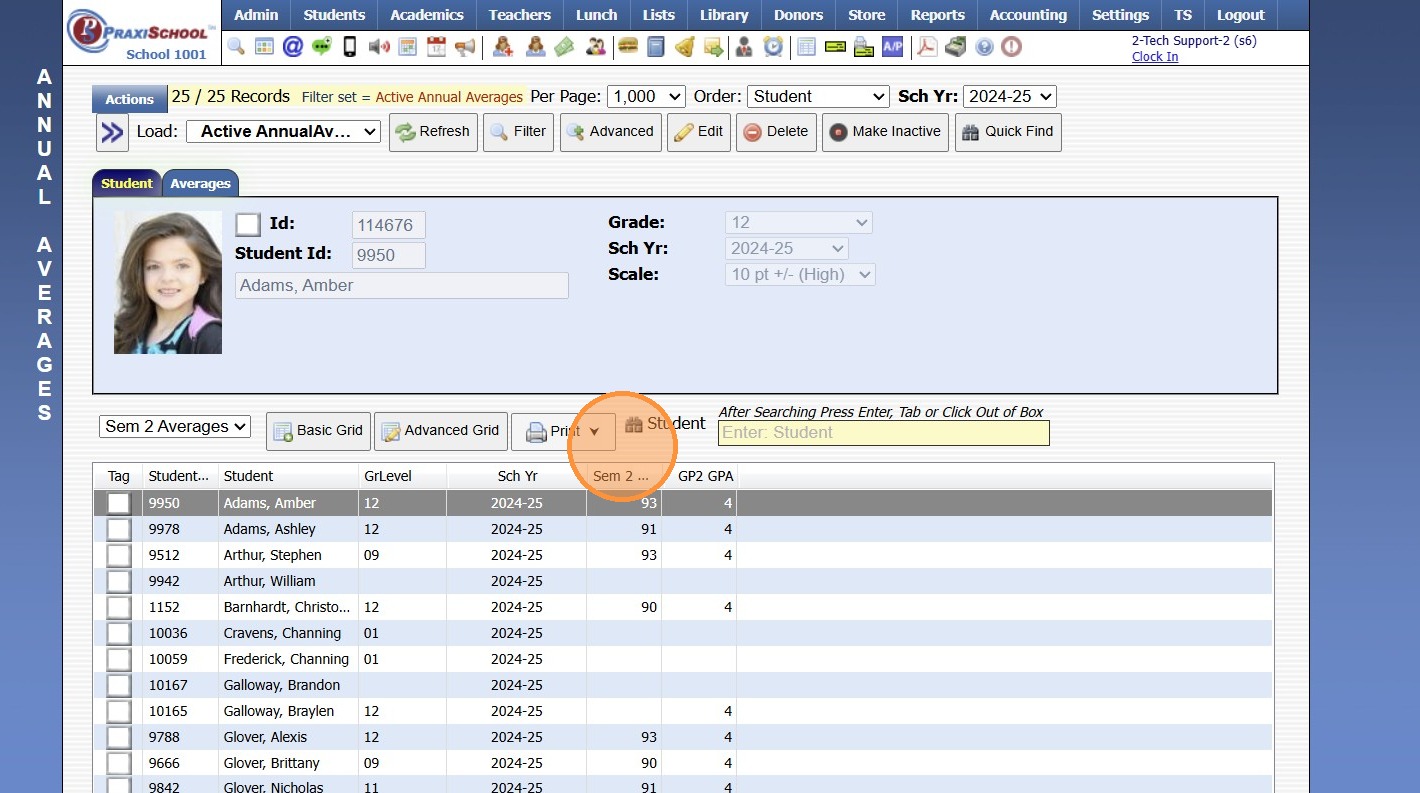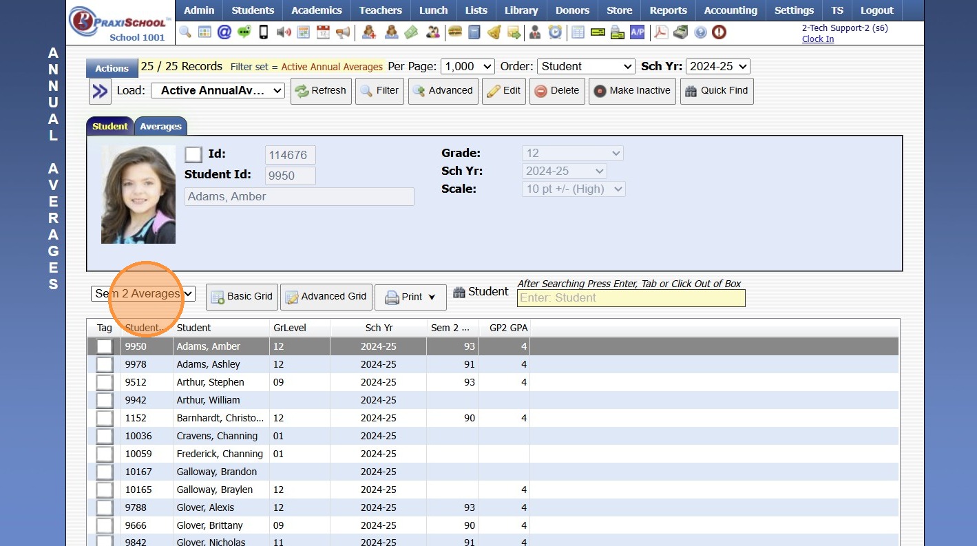Printing Class Averages 1. Click "Academics" 2. Click "Grades Reports" 3. Click "Class Averages" 4. Select from School Year Dropdown 5. Select the Grade Period/Quarter Option: (GP1, GP2, GP3, GP4, SEM1, SEM2 or Annual) 6. Select Rounding Option: (0, ...