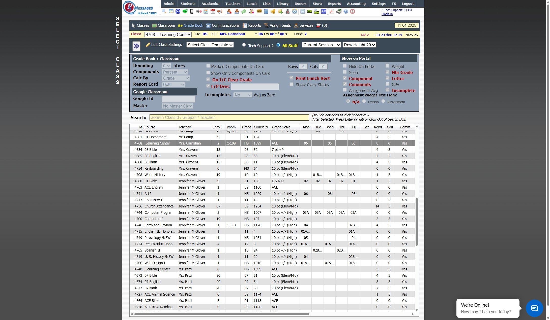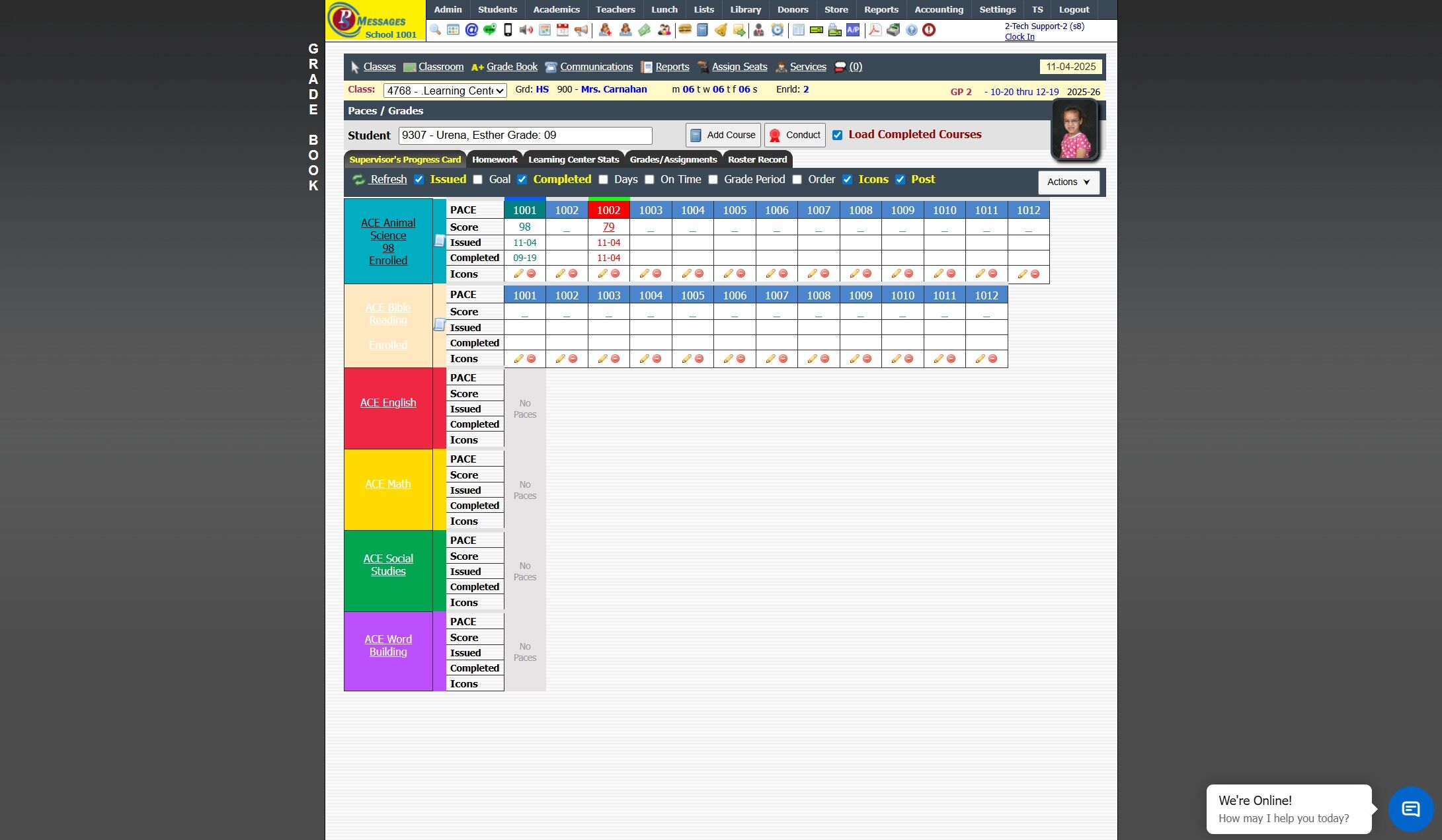 Issuing a PACE in the Learning Center 1. Click "Teachers" 2. Click "Classroom" 3. Select Learning Center Course in Grid 4. Click "Grade Book" 5. Select Student 6. Click on the Line "-" Under the PACE Number to Issue 7. Click "Issue" 2500.17.3