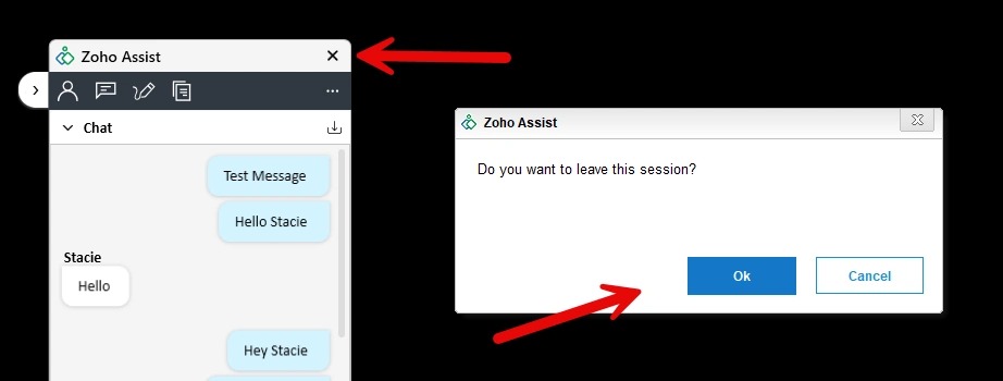 13. Click the "X" & Click "Ok" to Close Chat when Finished