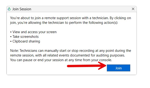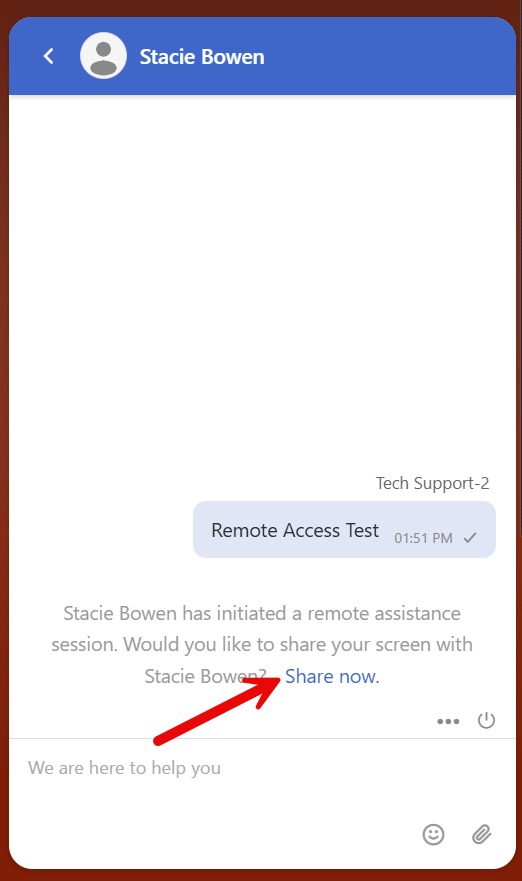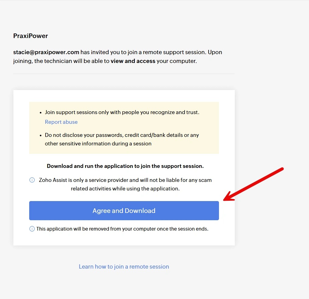 Support - How to Connect to Remote Access 1. Click "Share Now" in Chat Window 2. Click "Join Session" 3. Click "Agree and Download" 4. Double click on download 5. Click "Yes" 6. Click "Join" 7. Zoho Assist Window 8. Click the Message Icon to continue ...