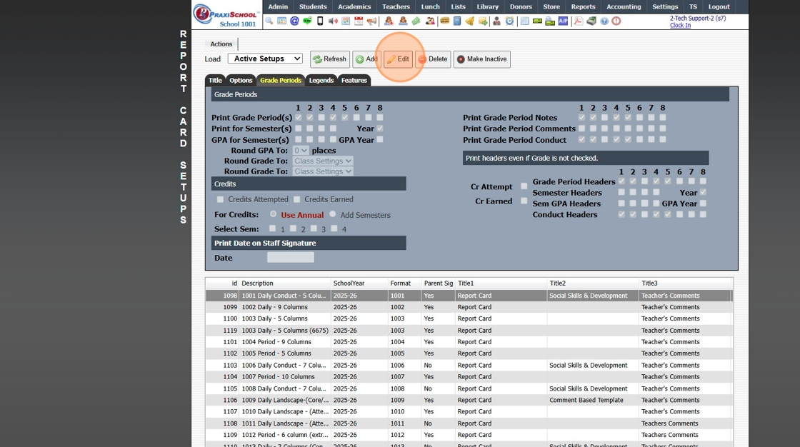 Closing a Grade Period Closing a Grade Period Prevents Grade Changes after Report Cards have been Processed. Teachers can Add/ Edit prior Grade Period Assignments. However, the Student's Overall Average will not Change. 1. Log into PraxiSchool 2. ...