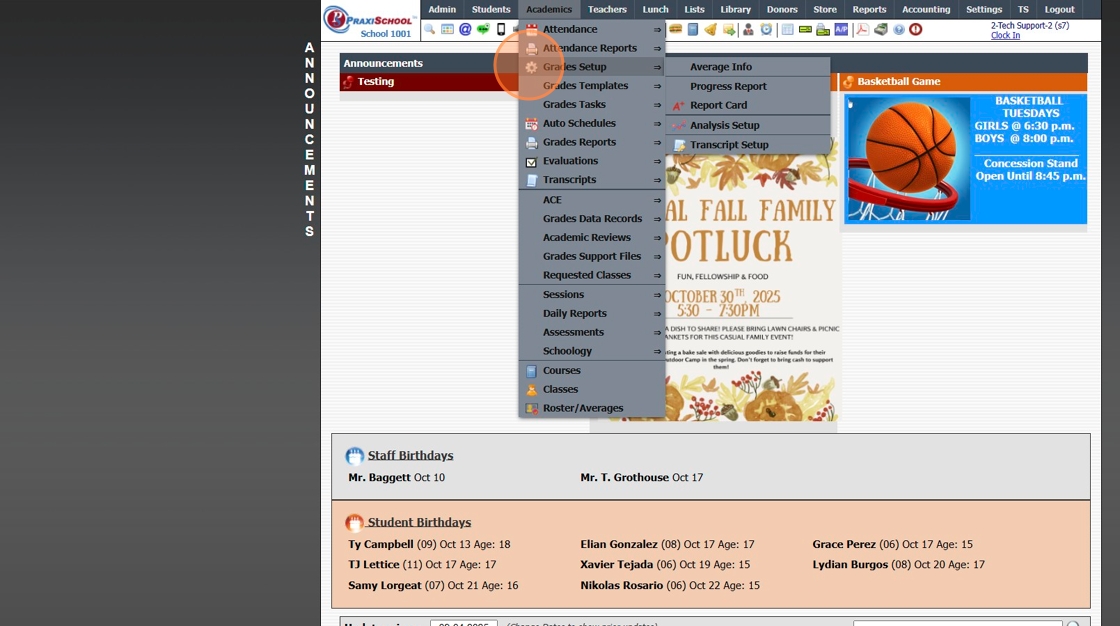 Creating a Grade Analysis that Excludes other Grade Analysis Report Creating a Simple Grade Analysis that excludes Another Grade Analysis, for All Classes on the same Grade Scale 1. Click "Academics" 2. Click "Grades Setup" 3. Click "Analysis Setup" ...